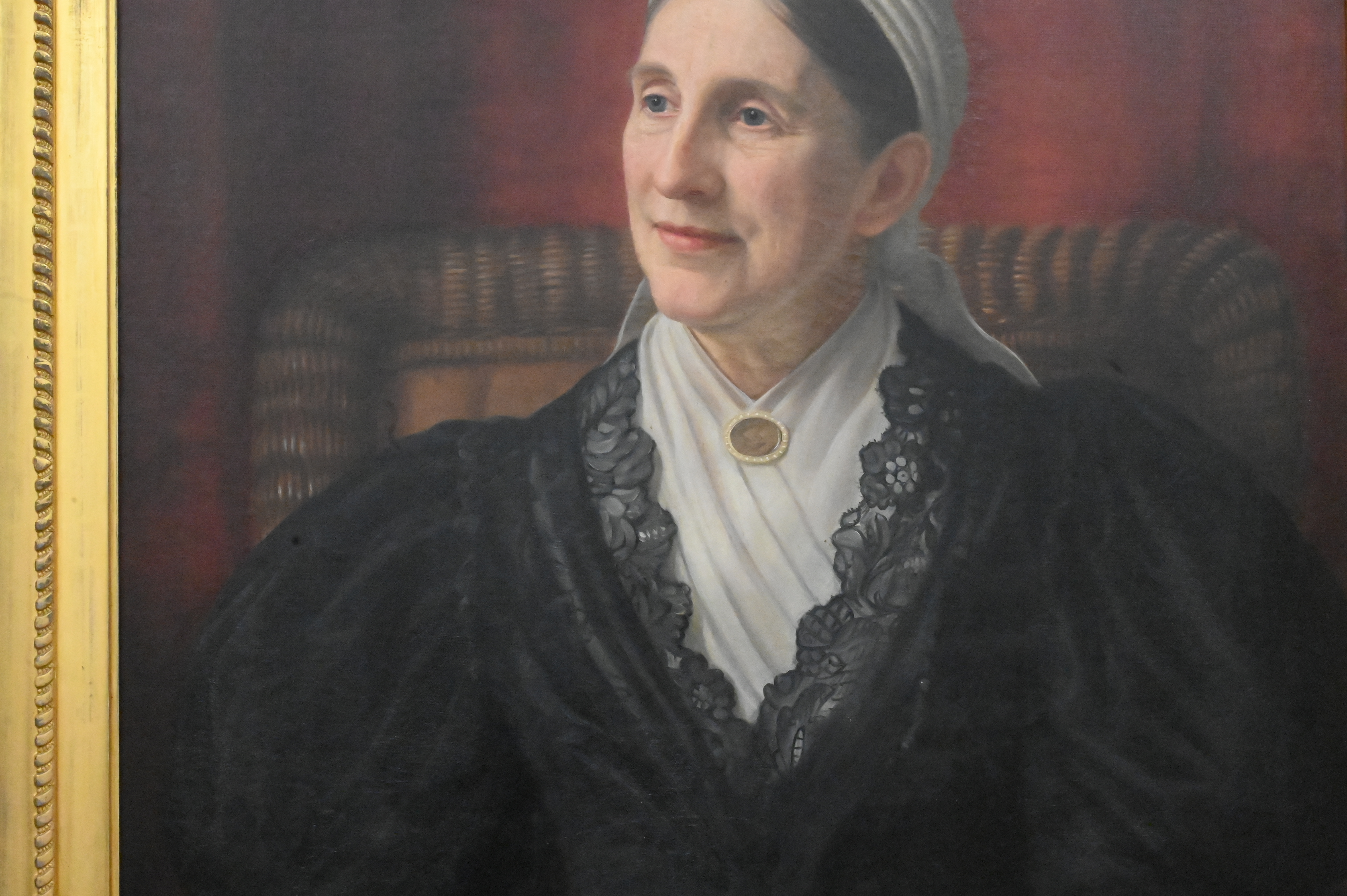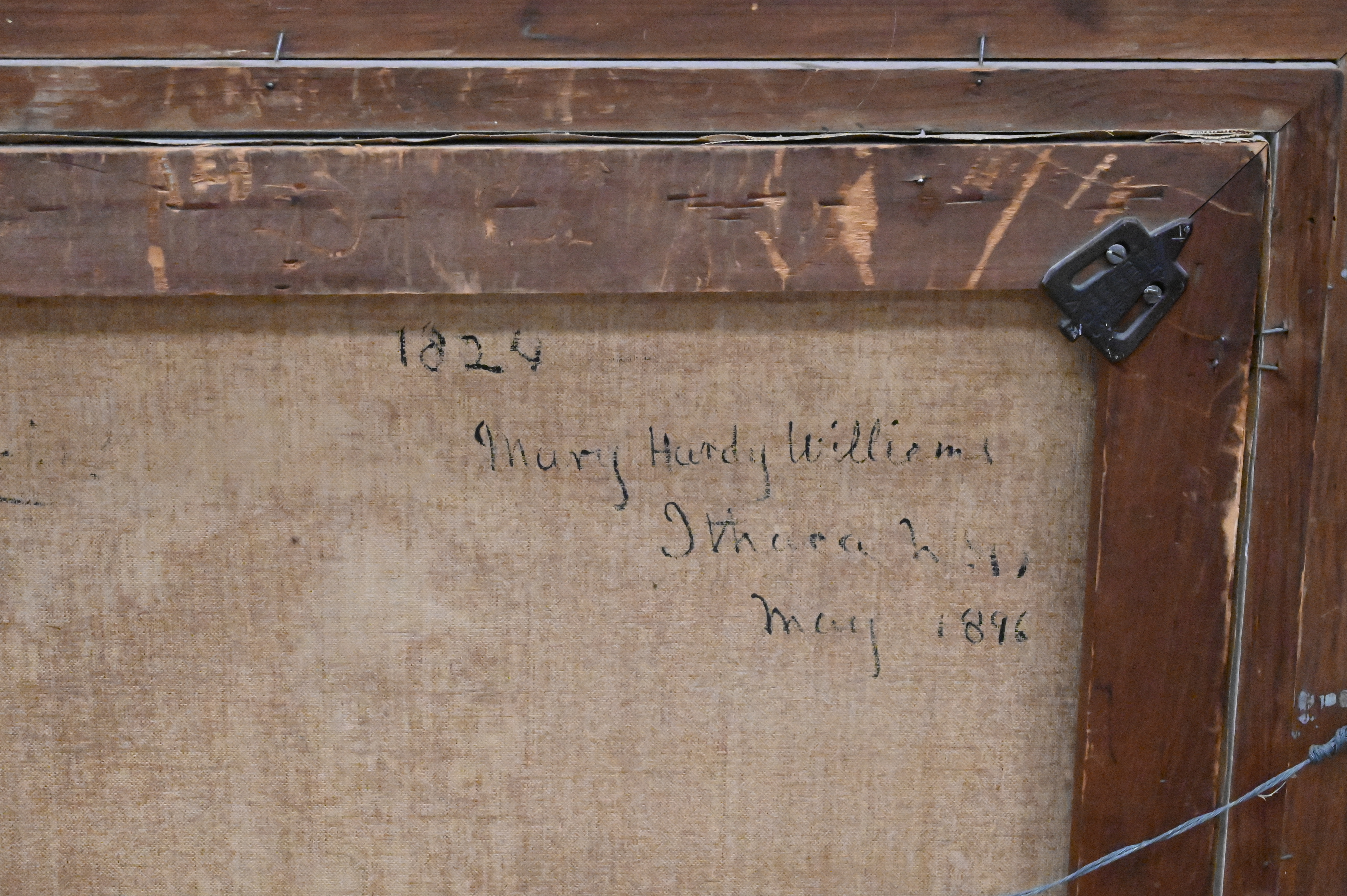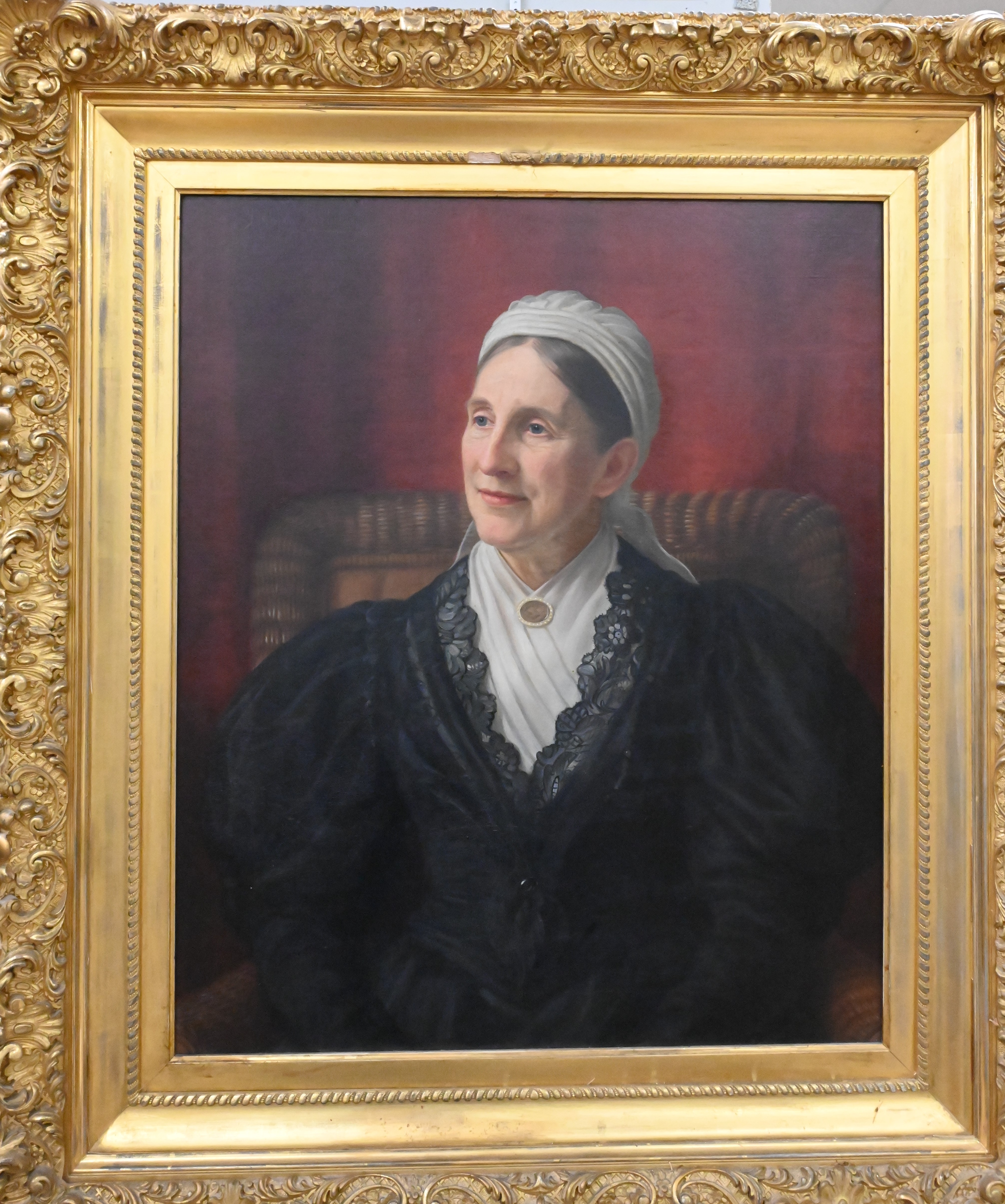 John Colin Forbes (Canadian, 1846 – 1925), portrait of Mary Hardy Williams of Ithaca, New York, oil on canvas, signed “J. Colin Forbes”, titled and dated “1896, May” in verso, 30″ x 24″.