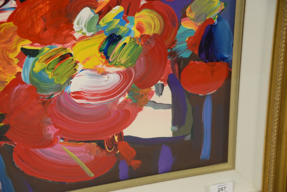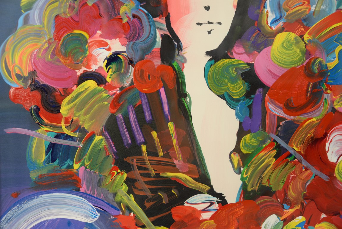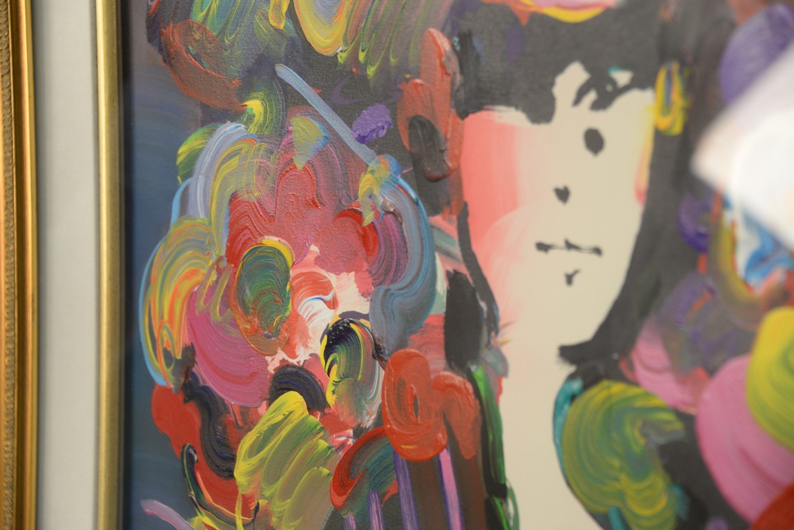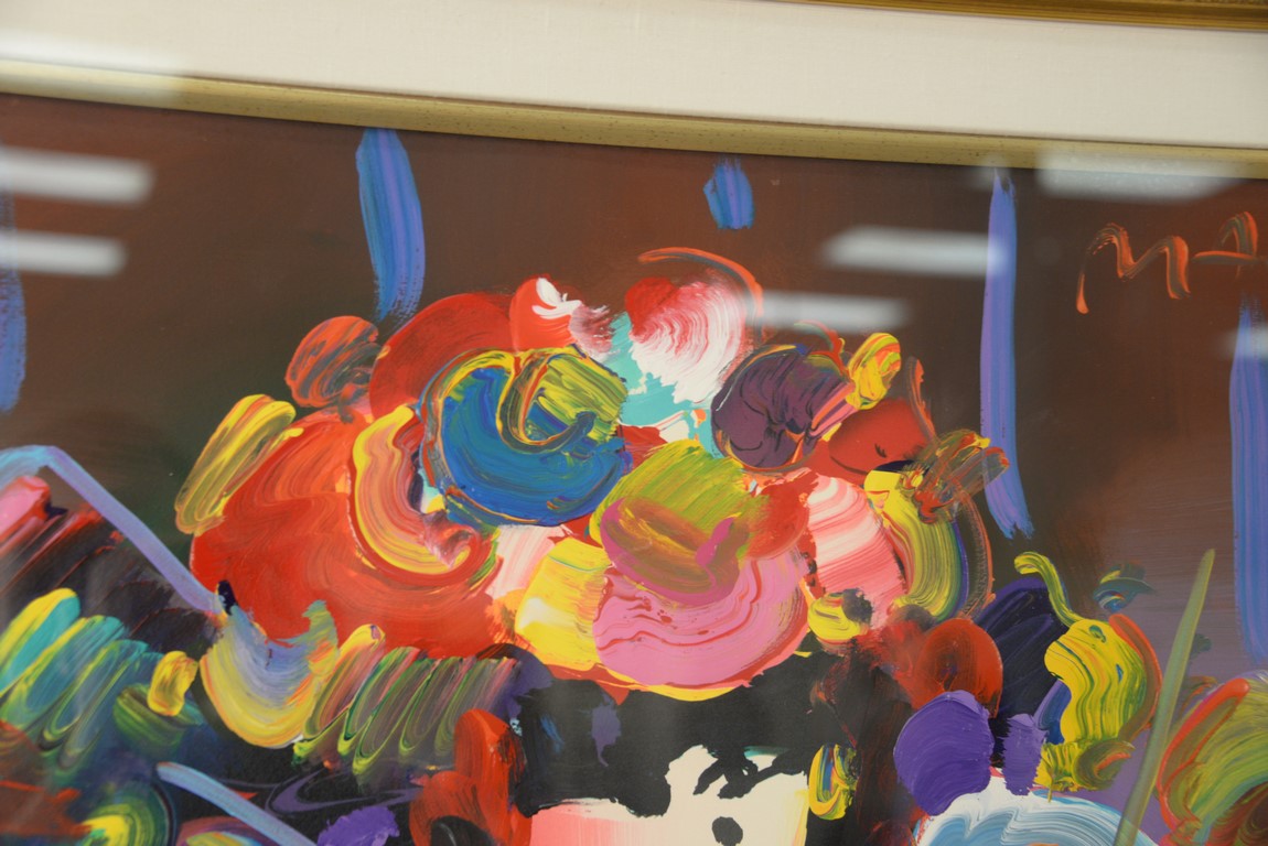 Lot 287: PETER MAX 1937 Brown Lady #1 hand embellished work on paper signed top right Max 36 x 26 1/2 being sold with Hanson Art Galleries bill of sale 4/27/92