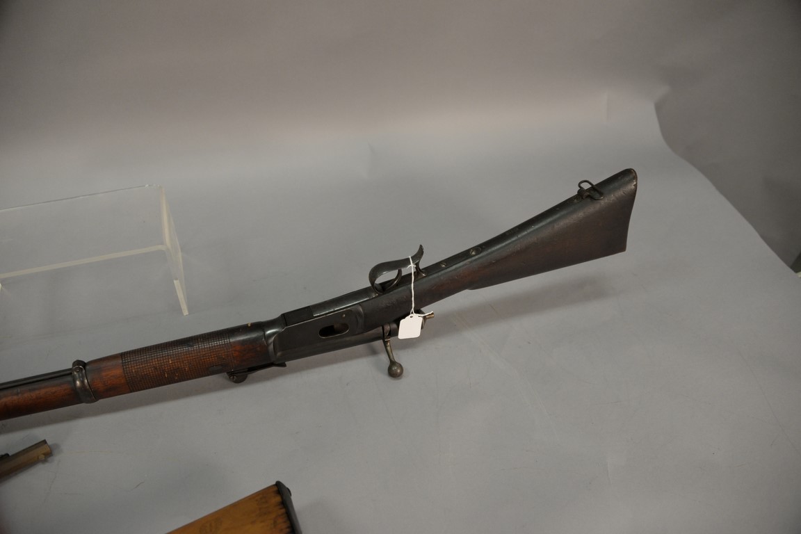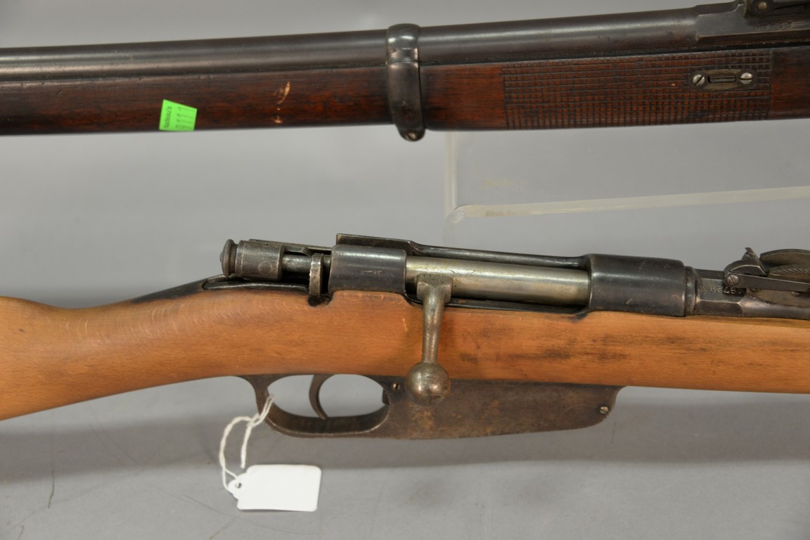 Lot 287: Three piece lot to include W.V. Steiger Thun Swiss Vetterli bolt action rifle 10mm rimfire bullets, vintage 1869 465 a Beretta Ga…