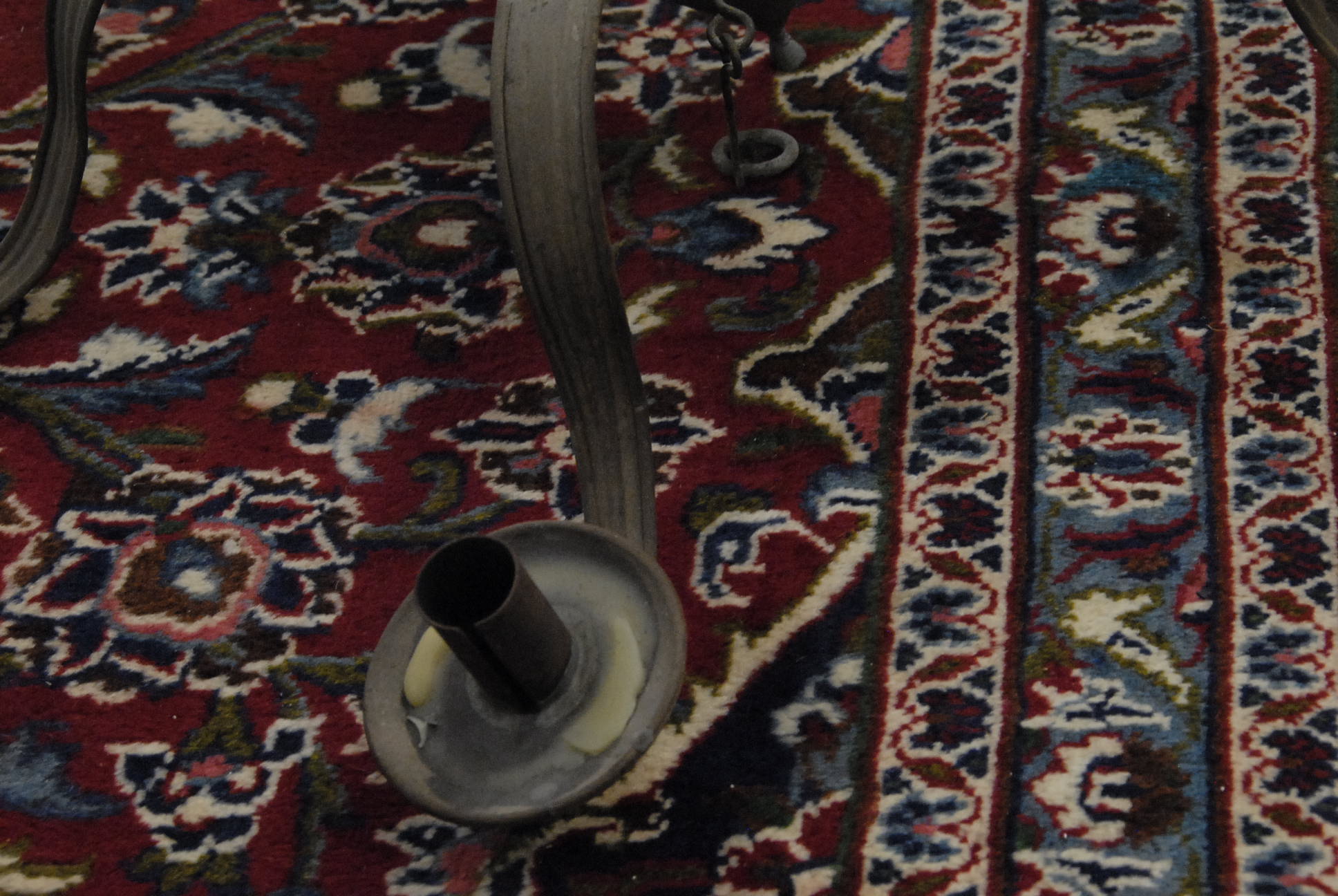 Tole hanging six light candle chandelier