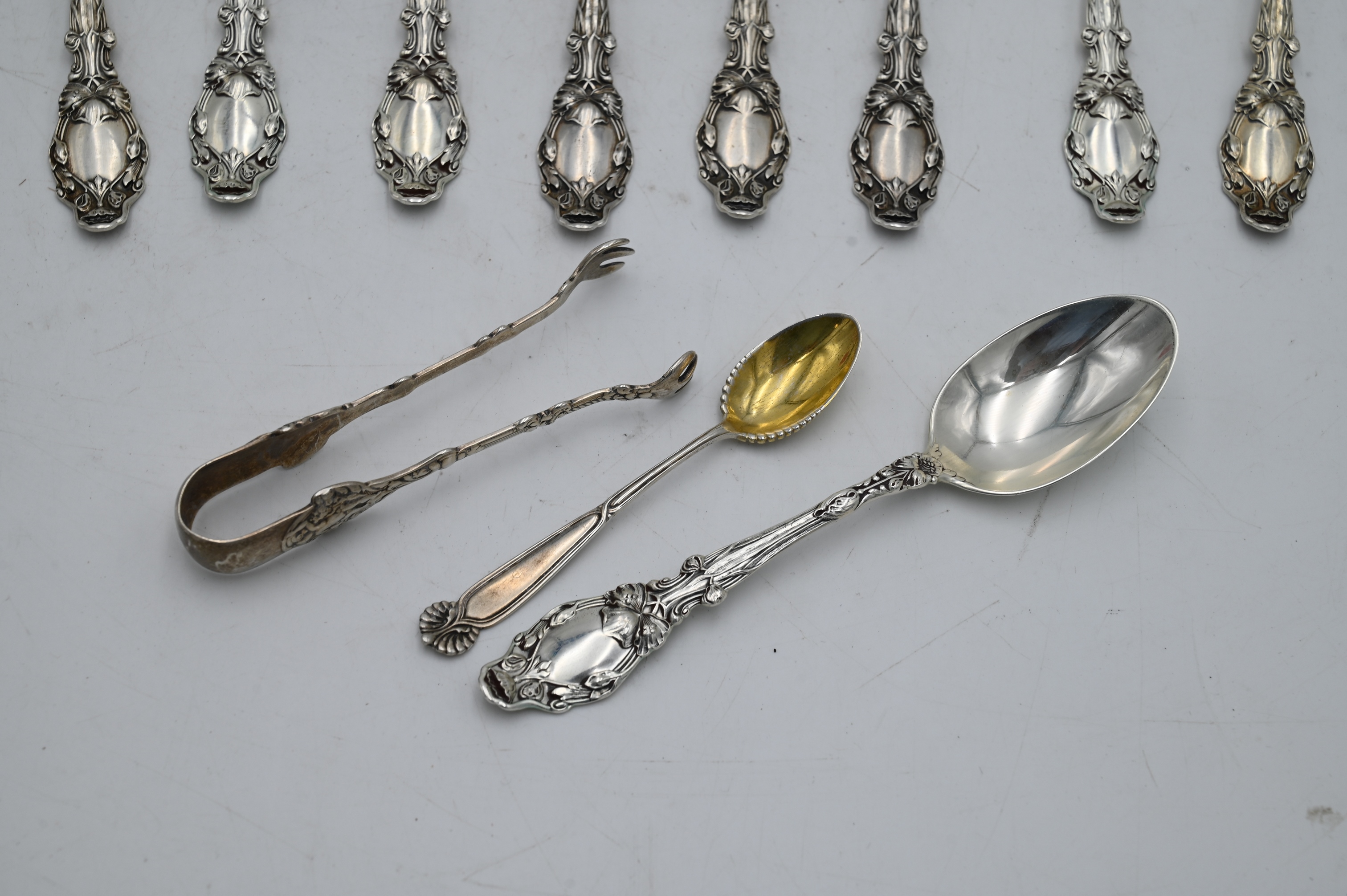to include 9 tea spoons, 1 serving piece, 1 demi spoon and 1 tong