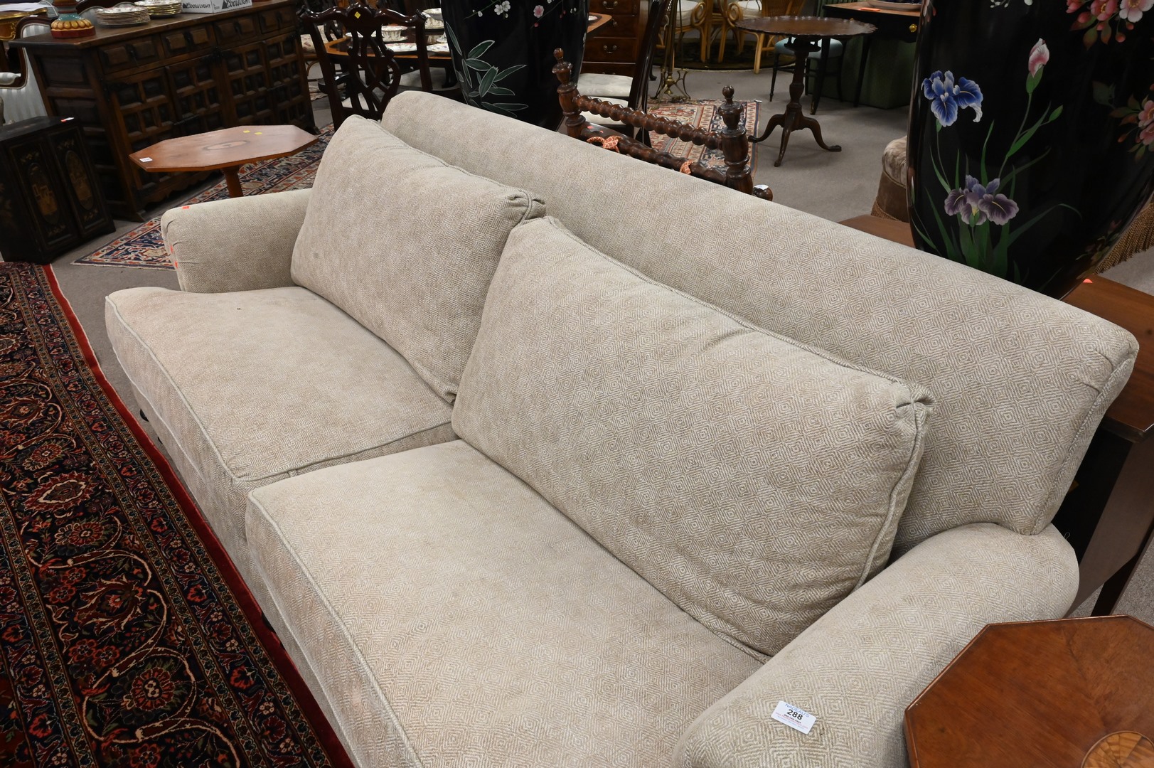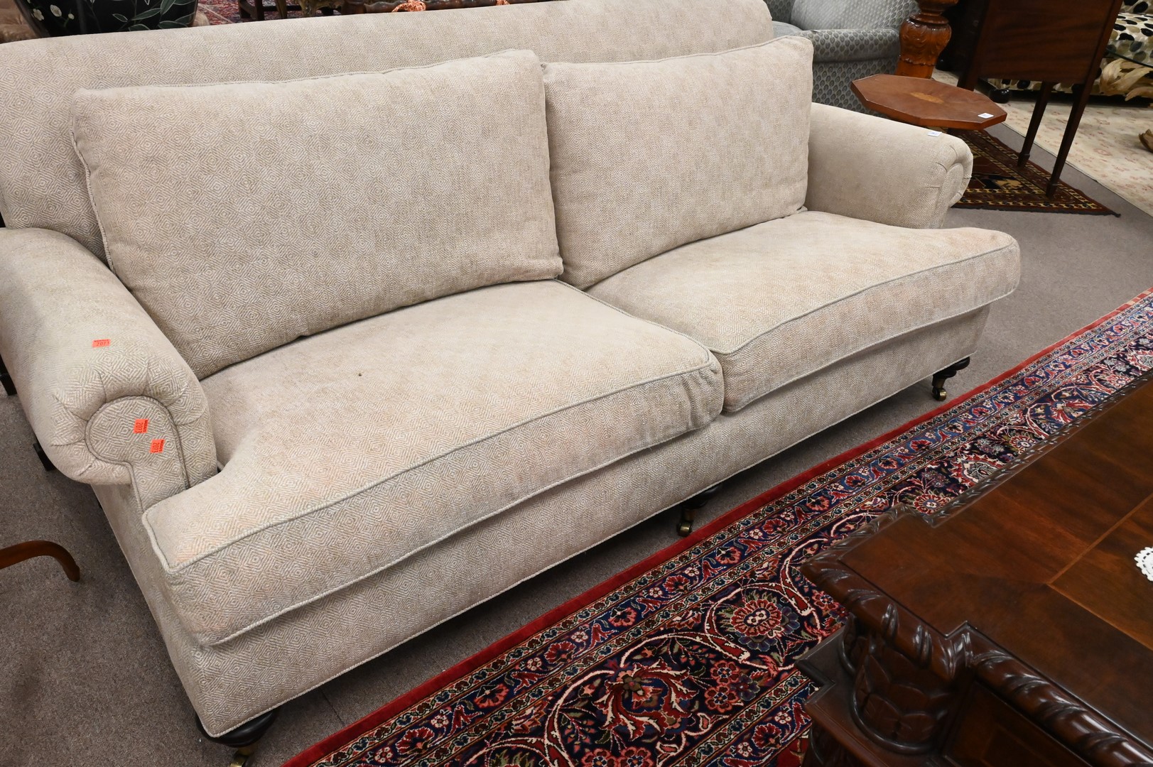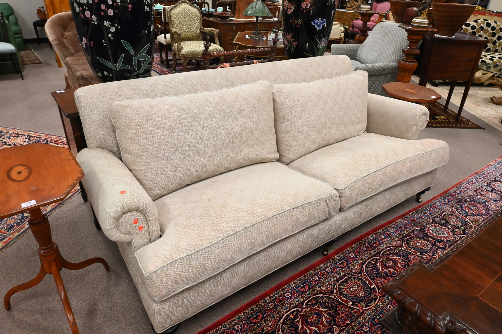 Baker Upholstered Sofa, height 35 inches, length 85 inches.