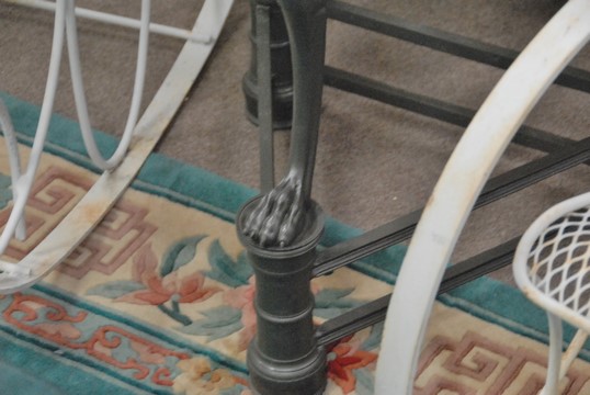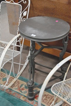 Contemporary iron stand with dogs on legs. ht. 29 1/2 in. dia. 19 in.