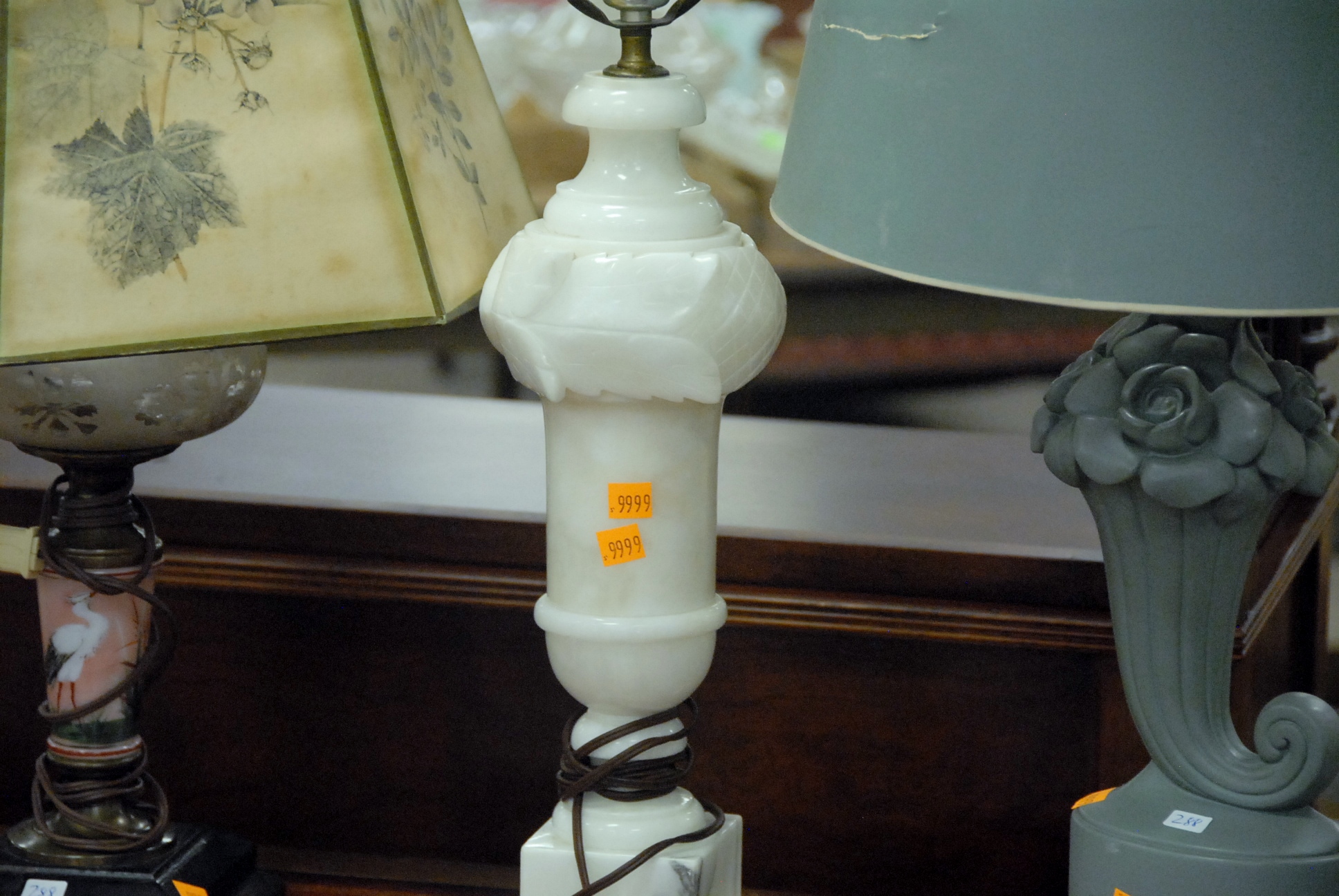 Group of four lamps to include pair of cornucopia lamps and marble lamp.