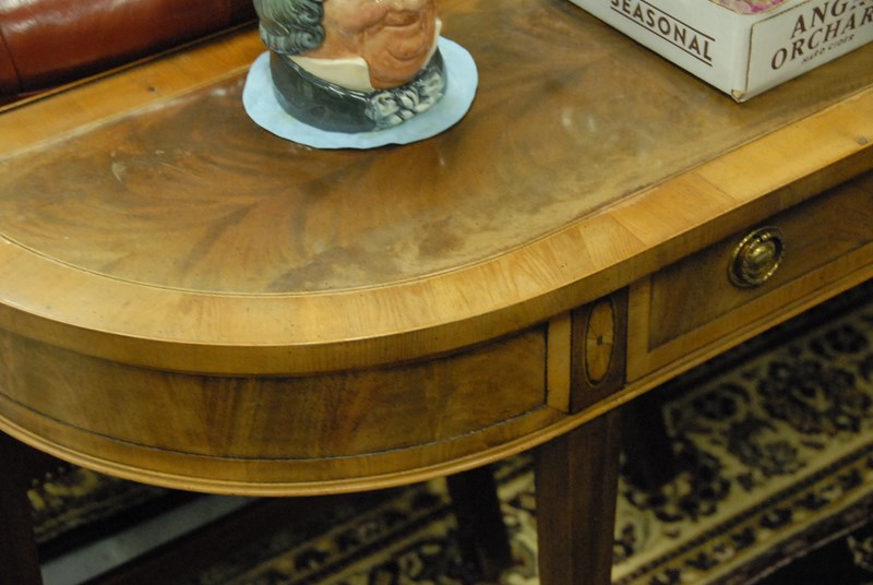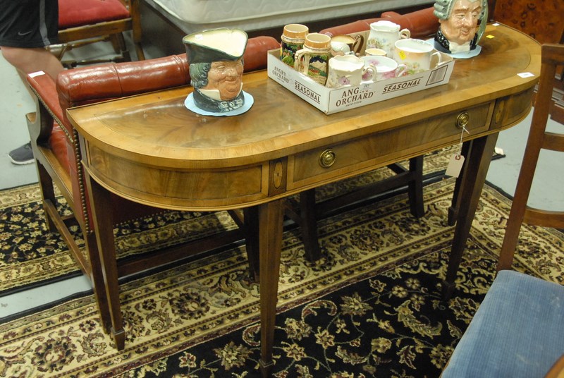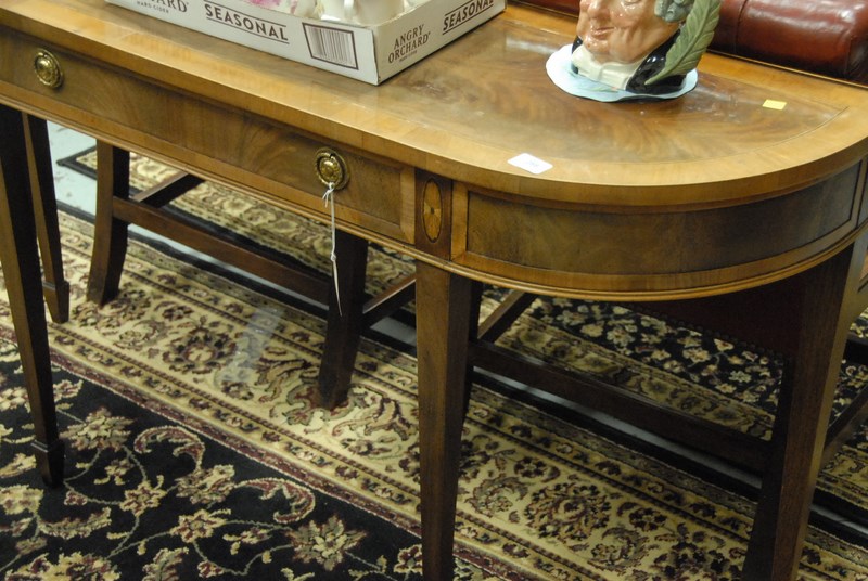 Hekman mahogany inlaid hall table sun faded, ht. 30 in. lg. 54 in.