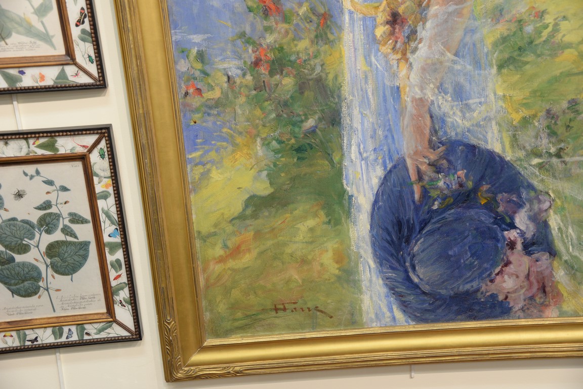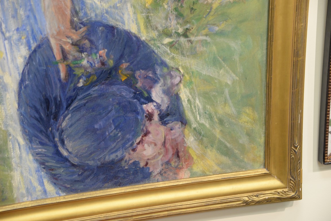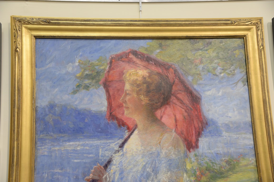 Lot 288: Henri Farre 1871-1934 oil on canvas Portrait of Harriet B. Hopkins with a Parasol Painted on the grounds of the Thornquist Hous…