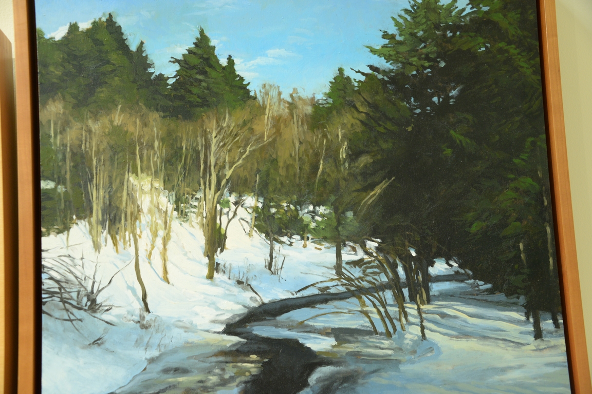 Jay Brooks 20th century oil on board Winter Stream Landscape, signed on verso J. Brooks 99′, framed by Hand Made Frames. 30 x 22 Provenance: Property from Credit Suisse’s Americana Collection