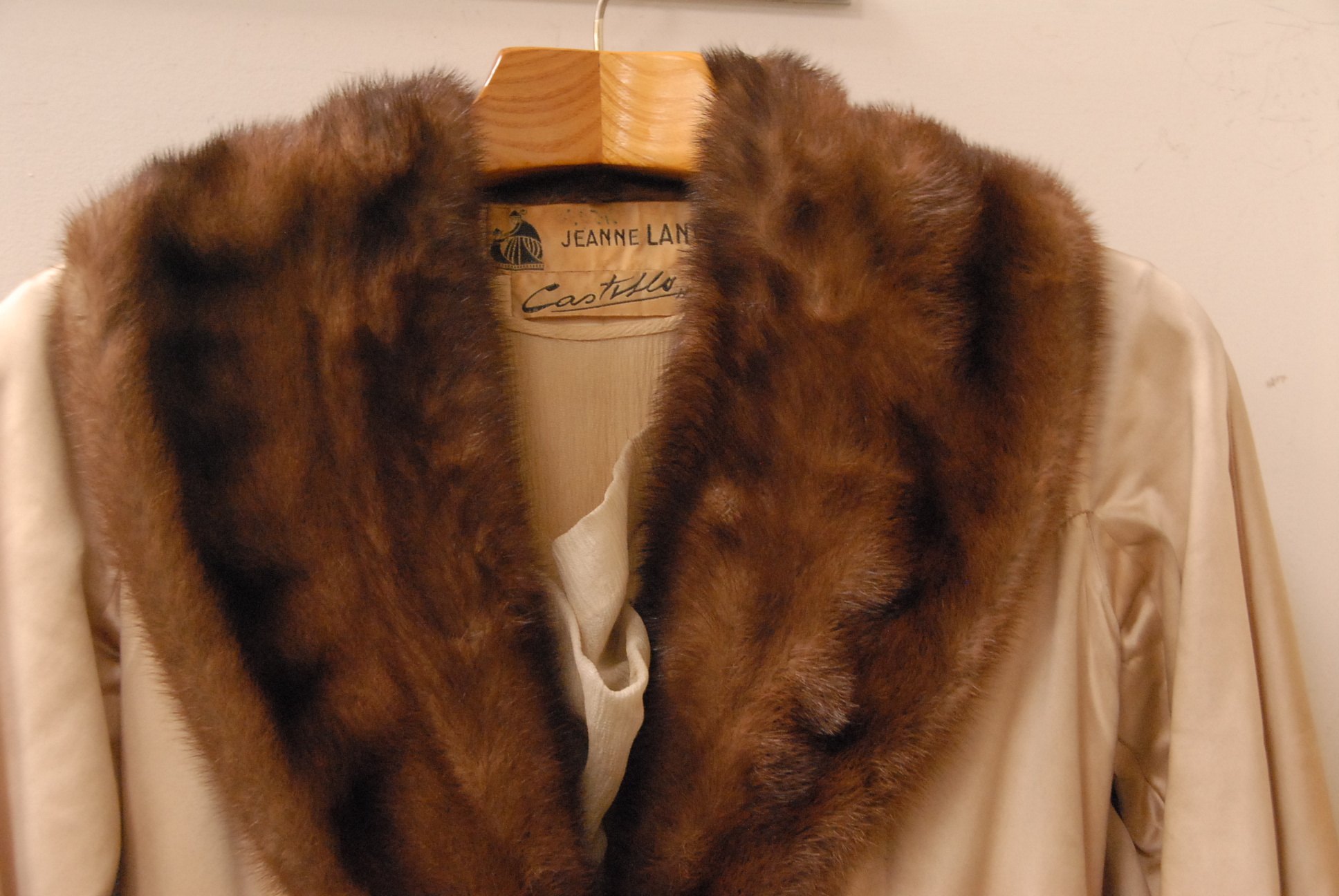 Jeanne Lanvin Castillo silk full length coat with mink collar, circa 1950-1960.