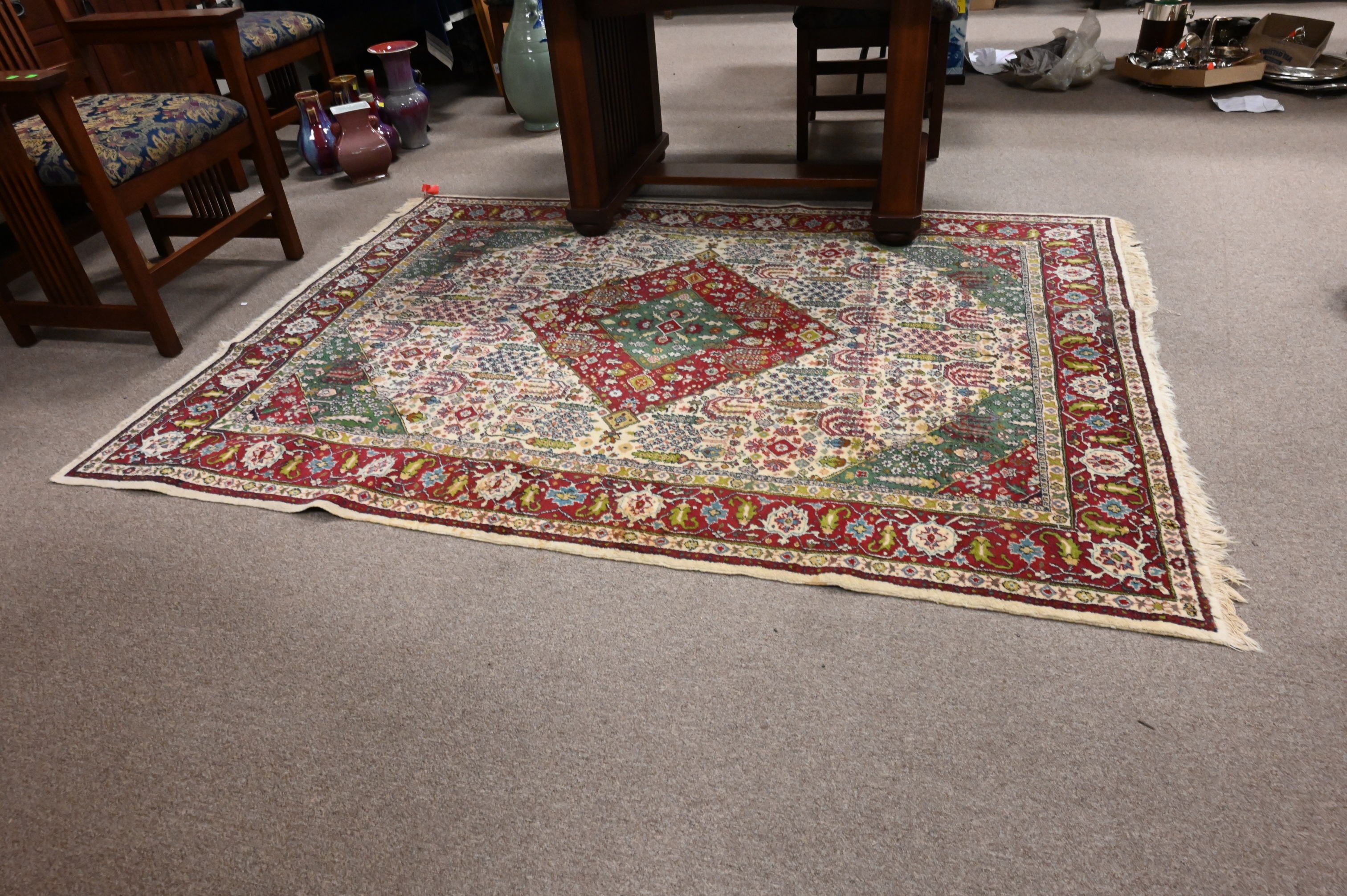 Lot 288: Oriental Throw Rug, 5′ 1″ x 6′ 9″.