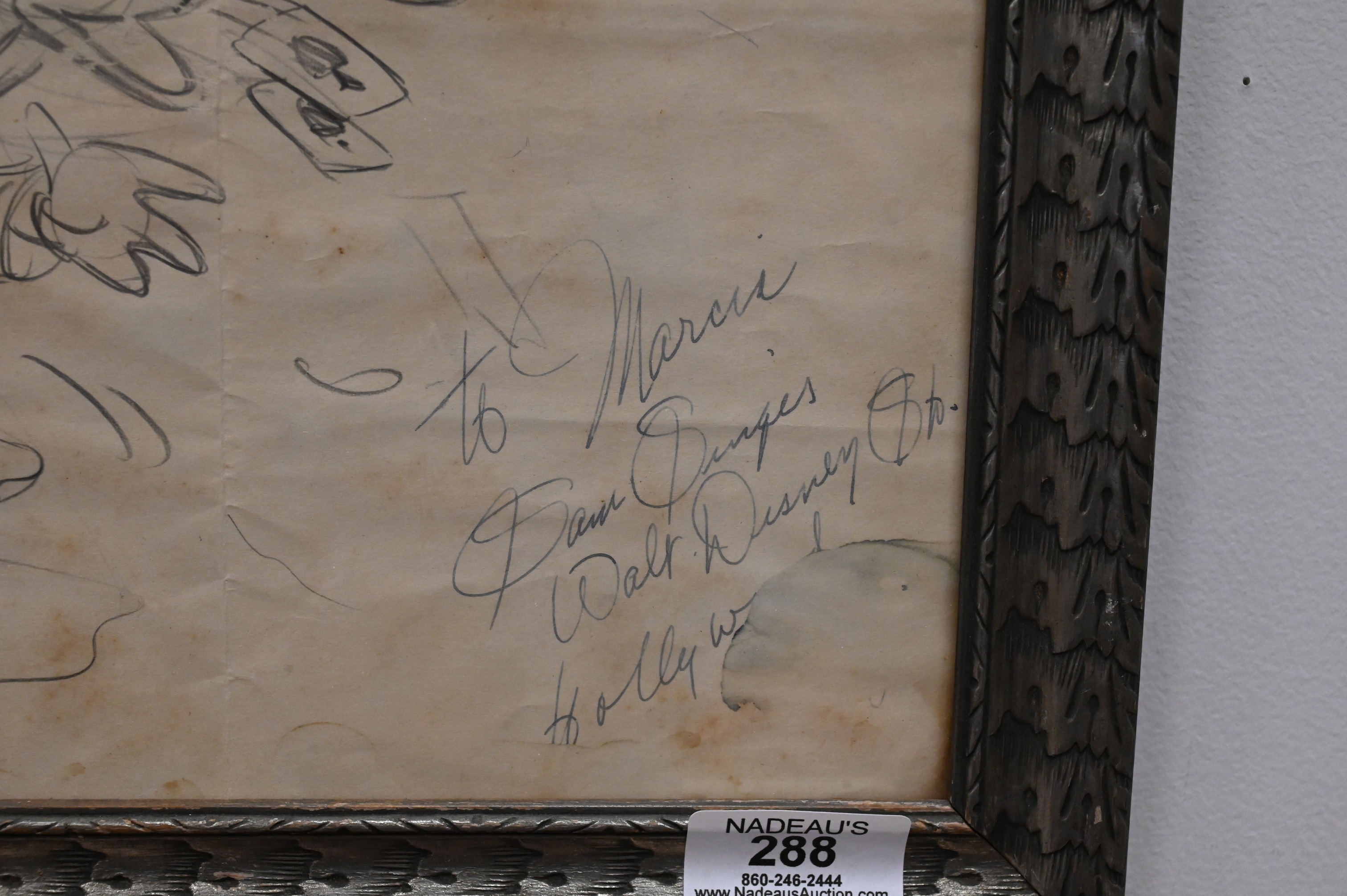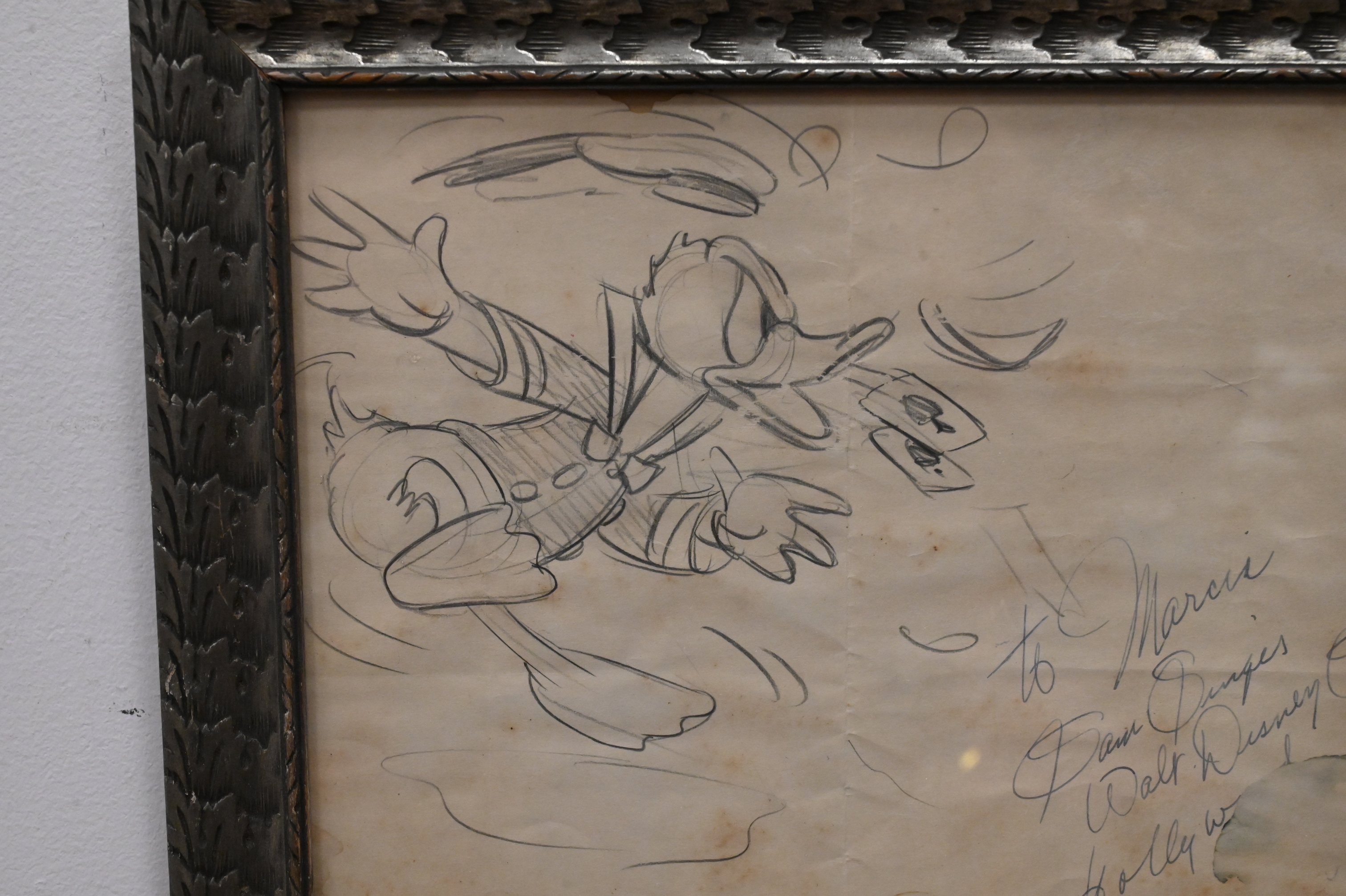 Graphite on paper, autographed by Disney animator