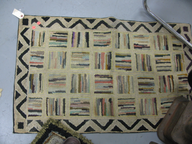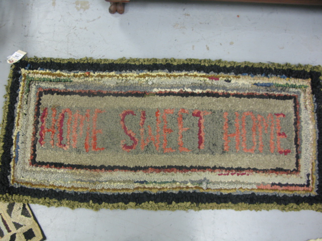 Three primitive hooked rugs, one butterfly, one home sweet home.