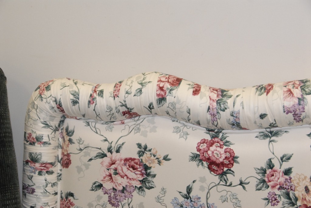 Upholstered king sized headboard and matching bed skirts for pair of twin bed.