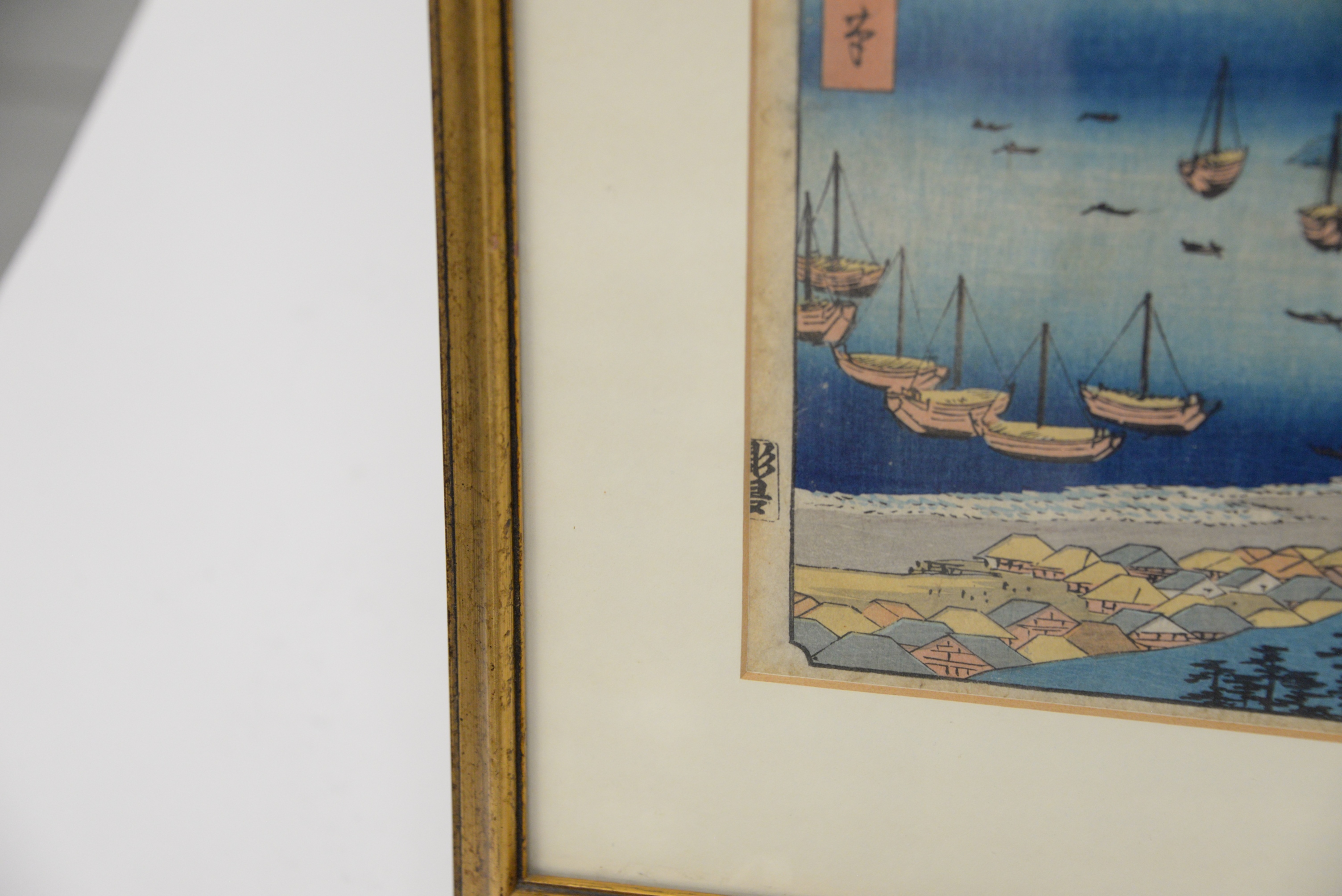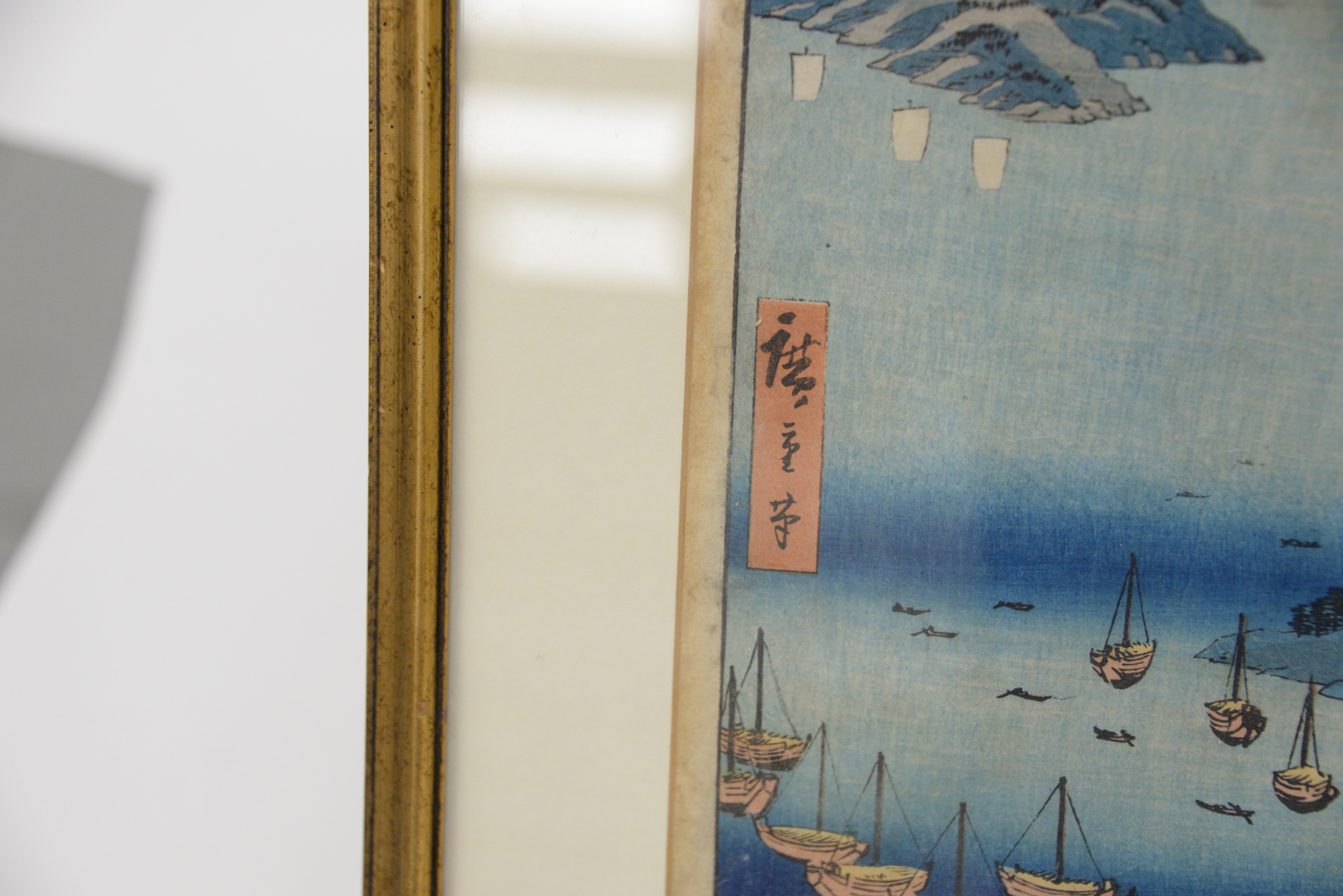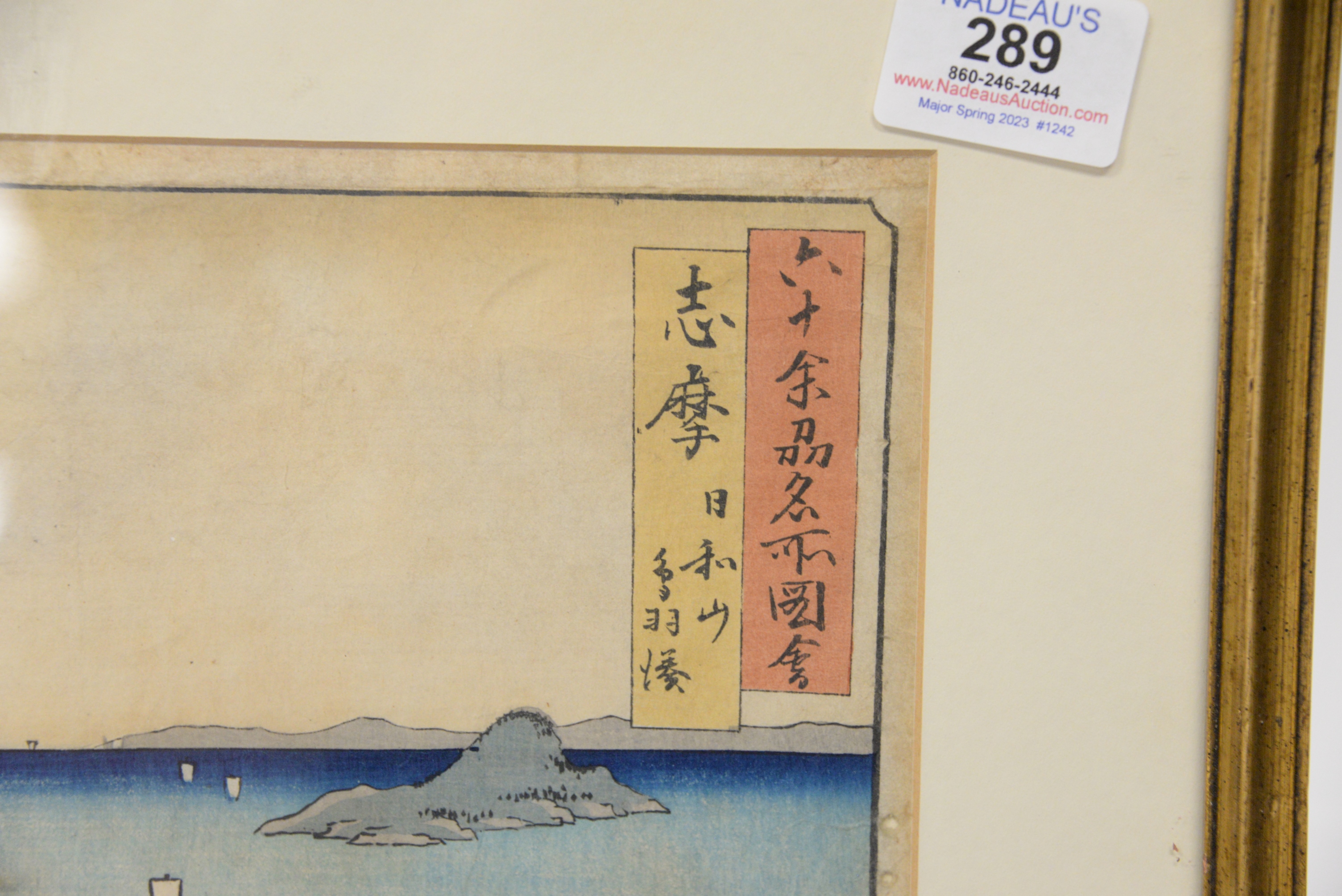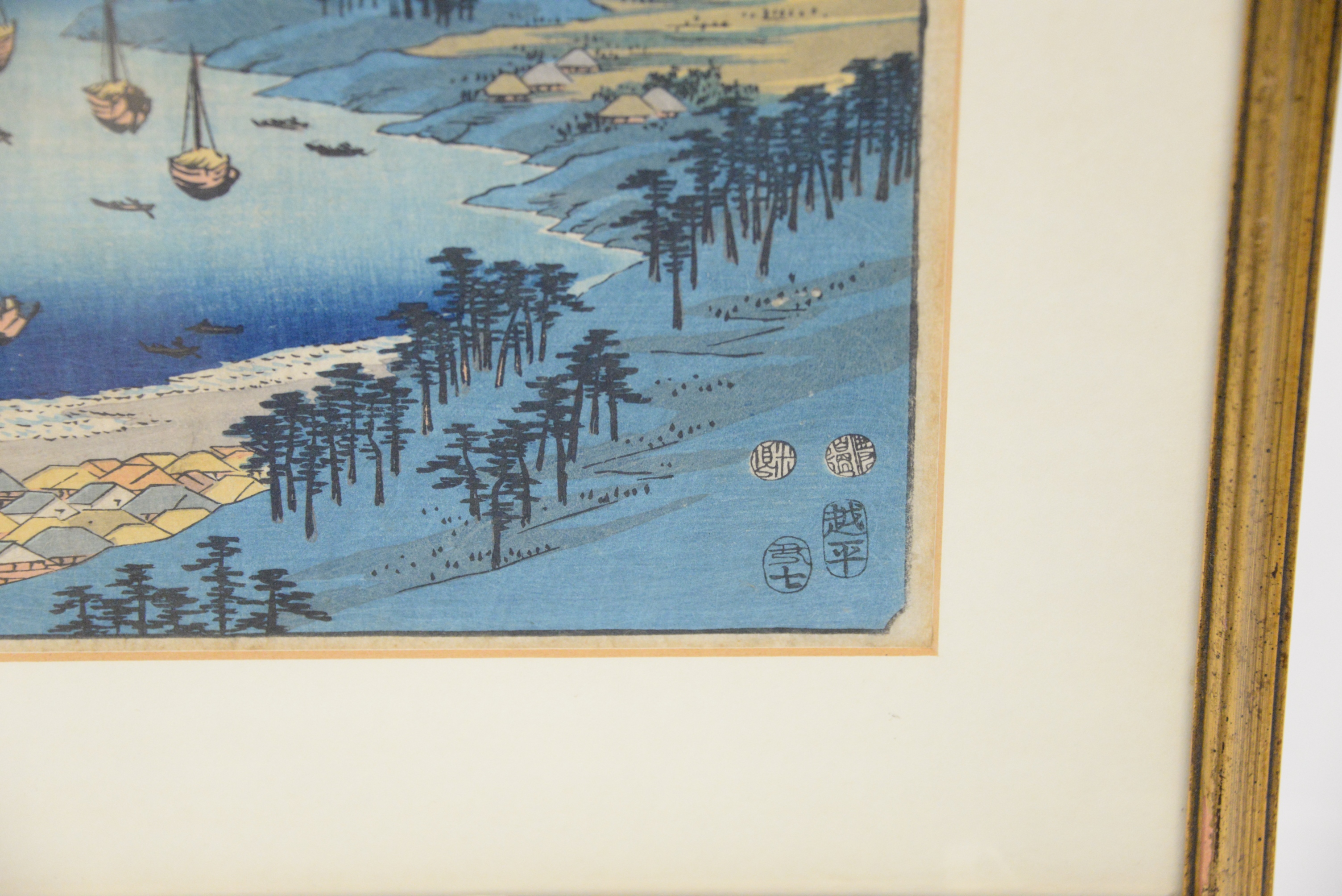 Ando Hiroshige Japanese Woodblock Print Shima Province Mount Hiyori And Toba Harbor from famous places in the sixty-odd provinces, 1853 11 1/8″ x 9″, 11″ x 7″.