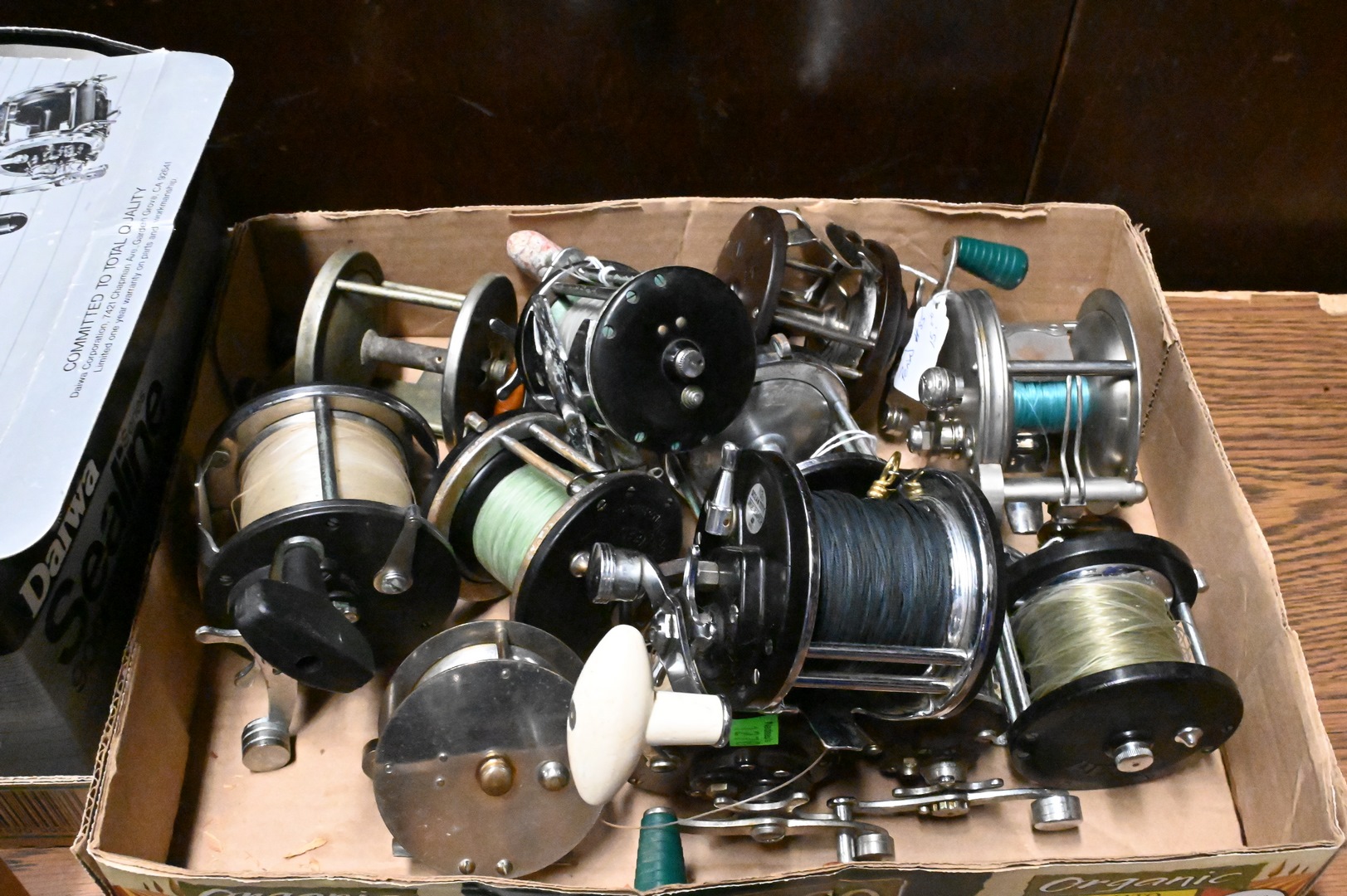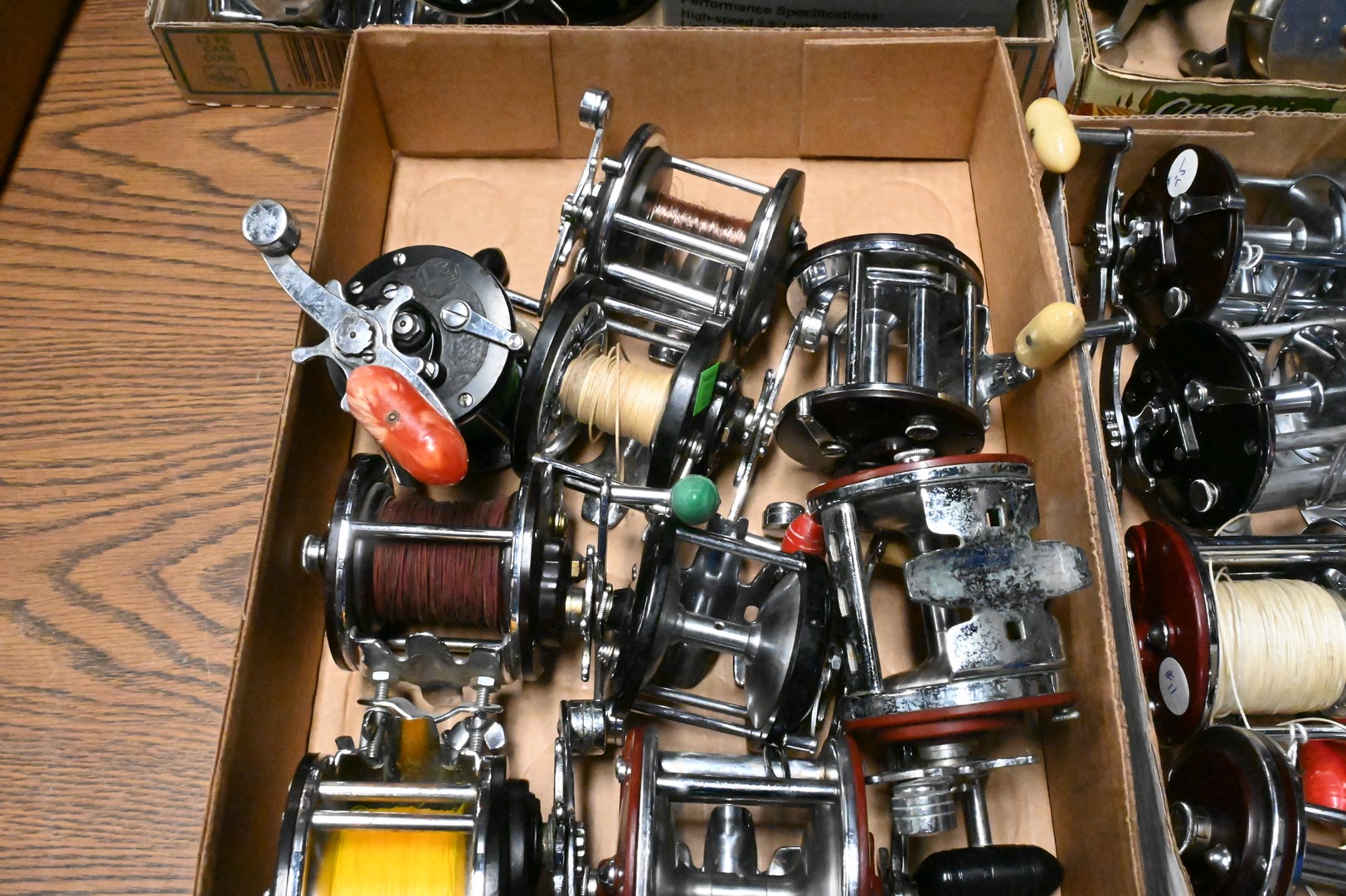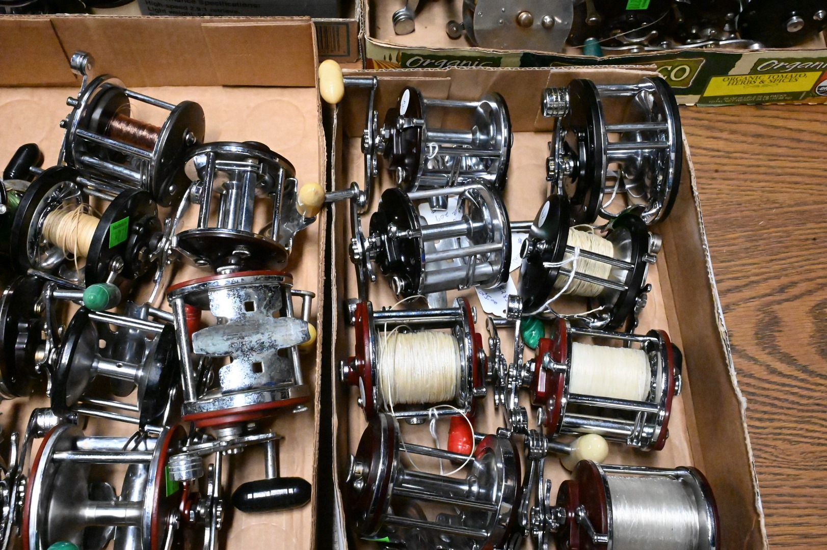 Approximately 35 Piece Lot of Penn Fishing Reels, along with others from Ocean City, Daiwa, and Greys, 4 box lots. Provenance: Estate of Peter Tillou, Litchfield, Connecticut.
