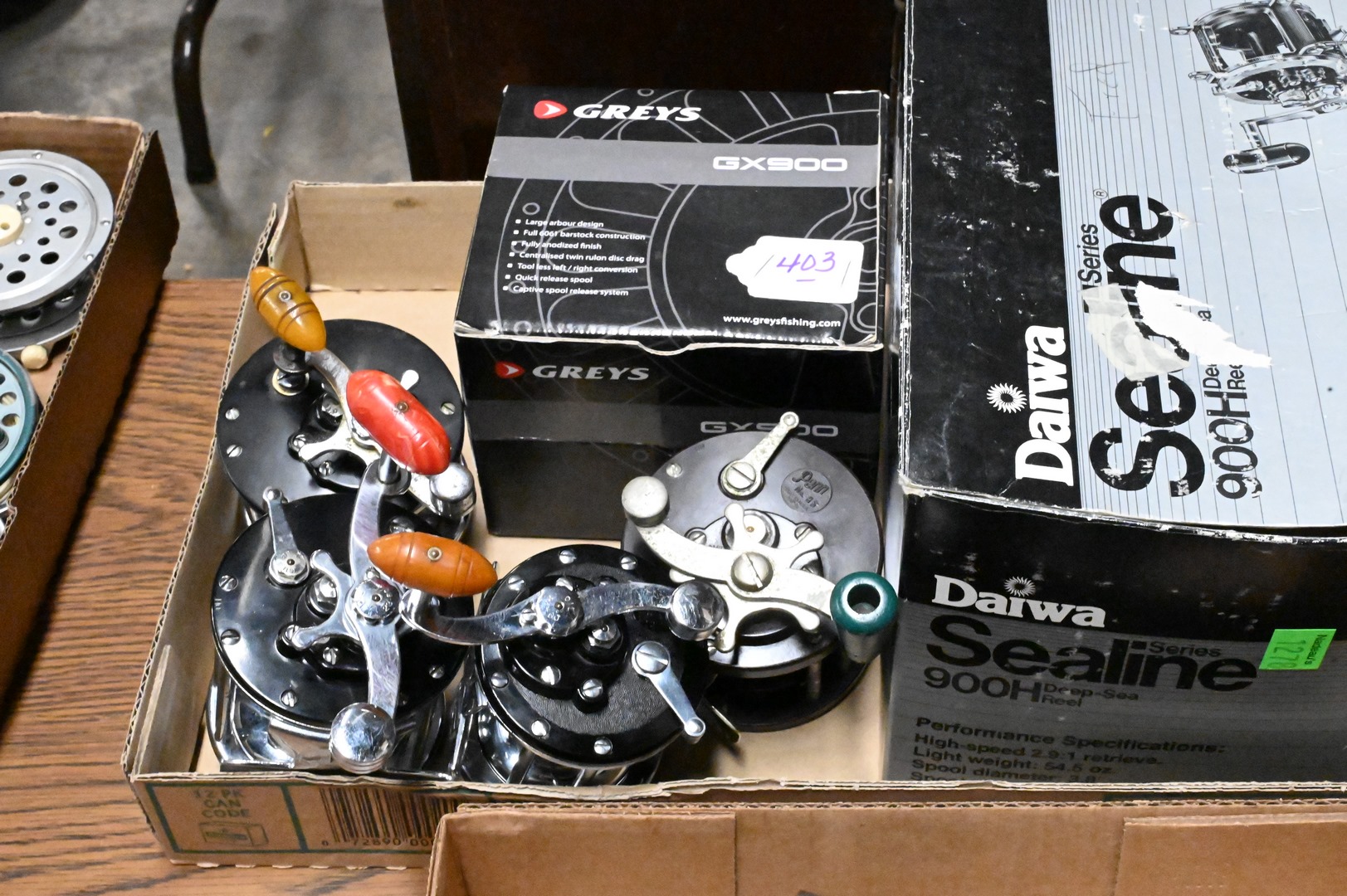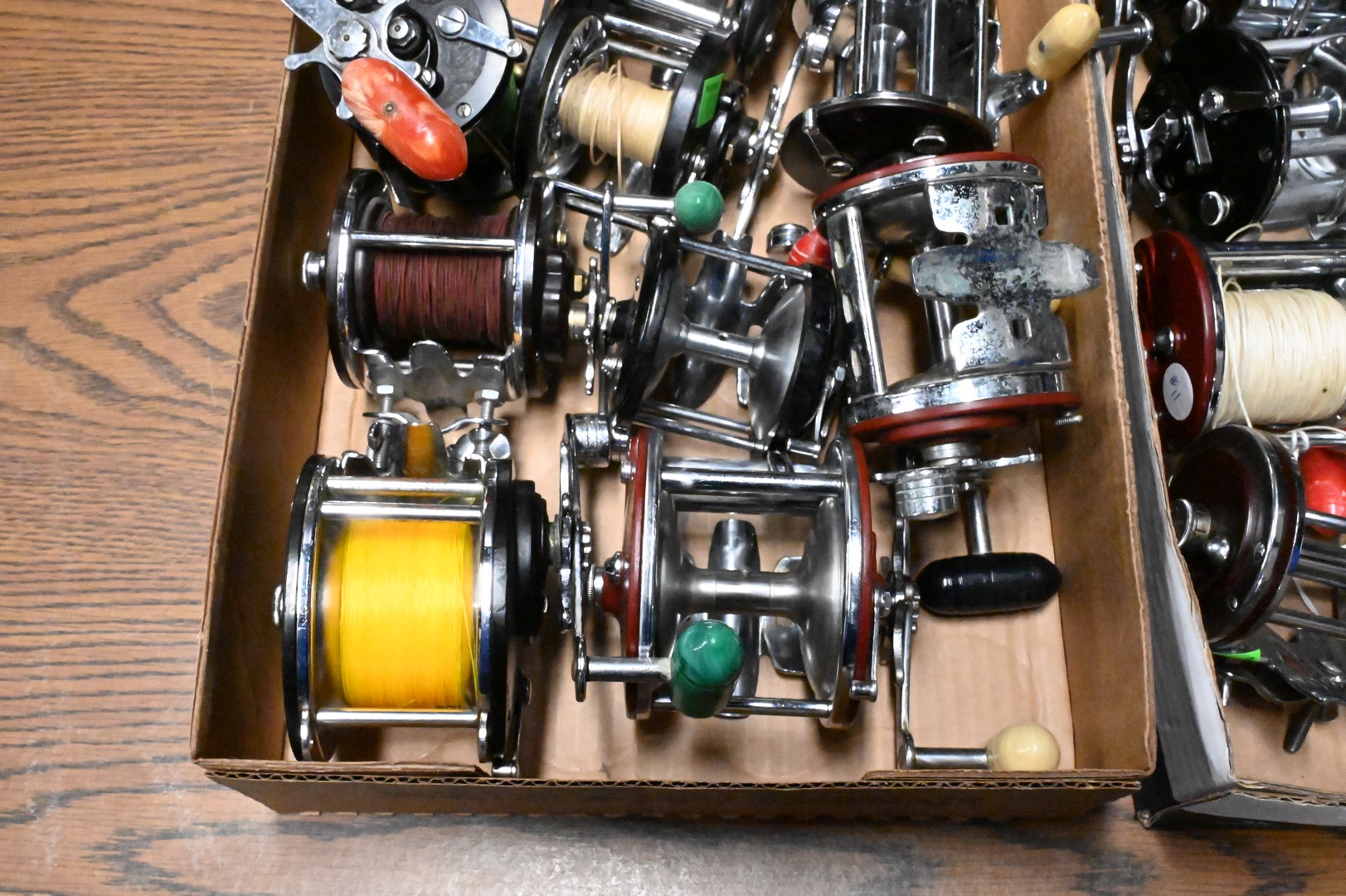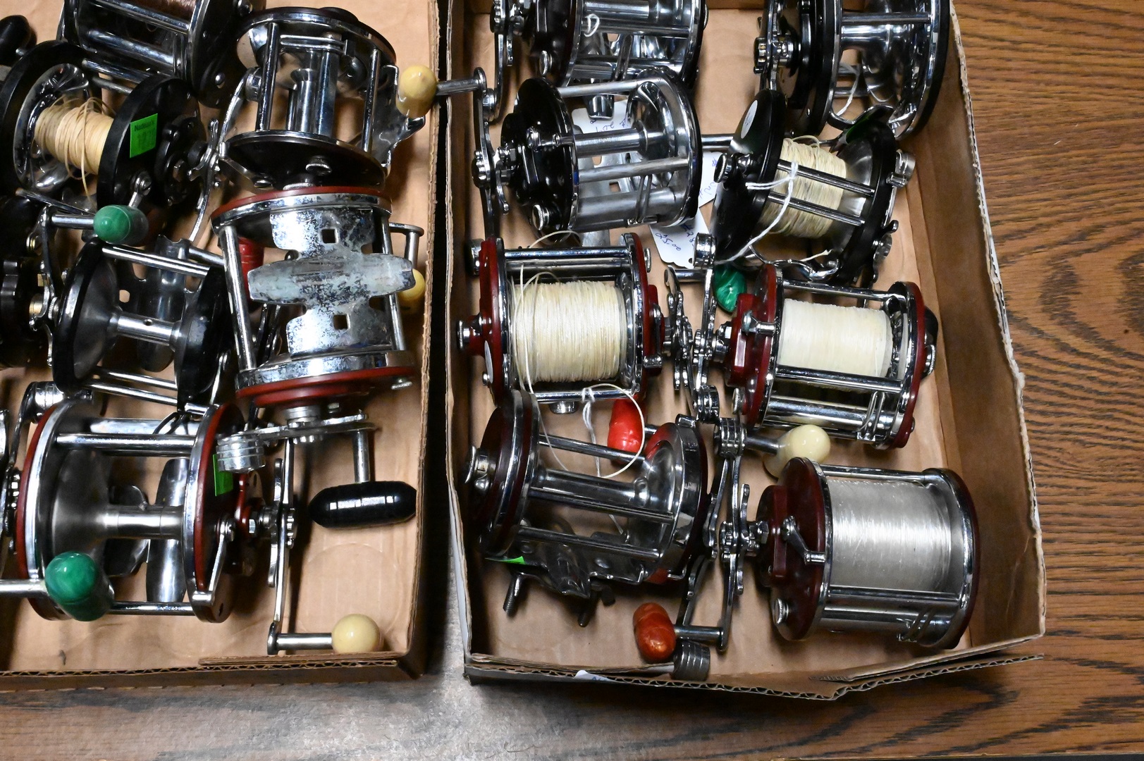 Approximately 35 Piece Lot of Penn Fishing Reels, along with others from Ocean City, Daiwa, and Greys, 4 box lots. Provenance: Estate of Peter Tillou, Litchfield, Connecticut.