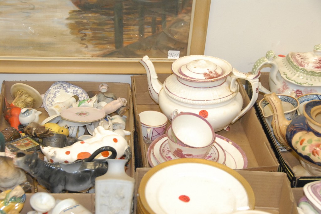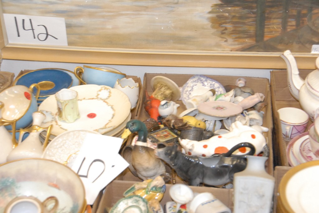 Hand painted Pickard bowl and plate, Irish Belleek, copper luster, Herend six covered cups, animal figures, plates, and more.