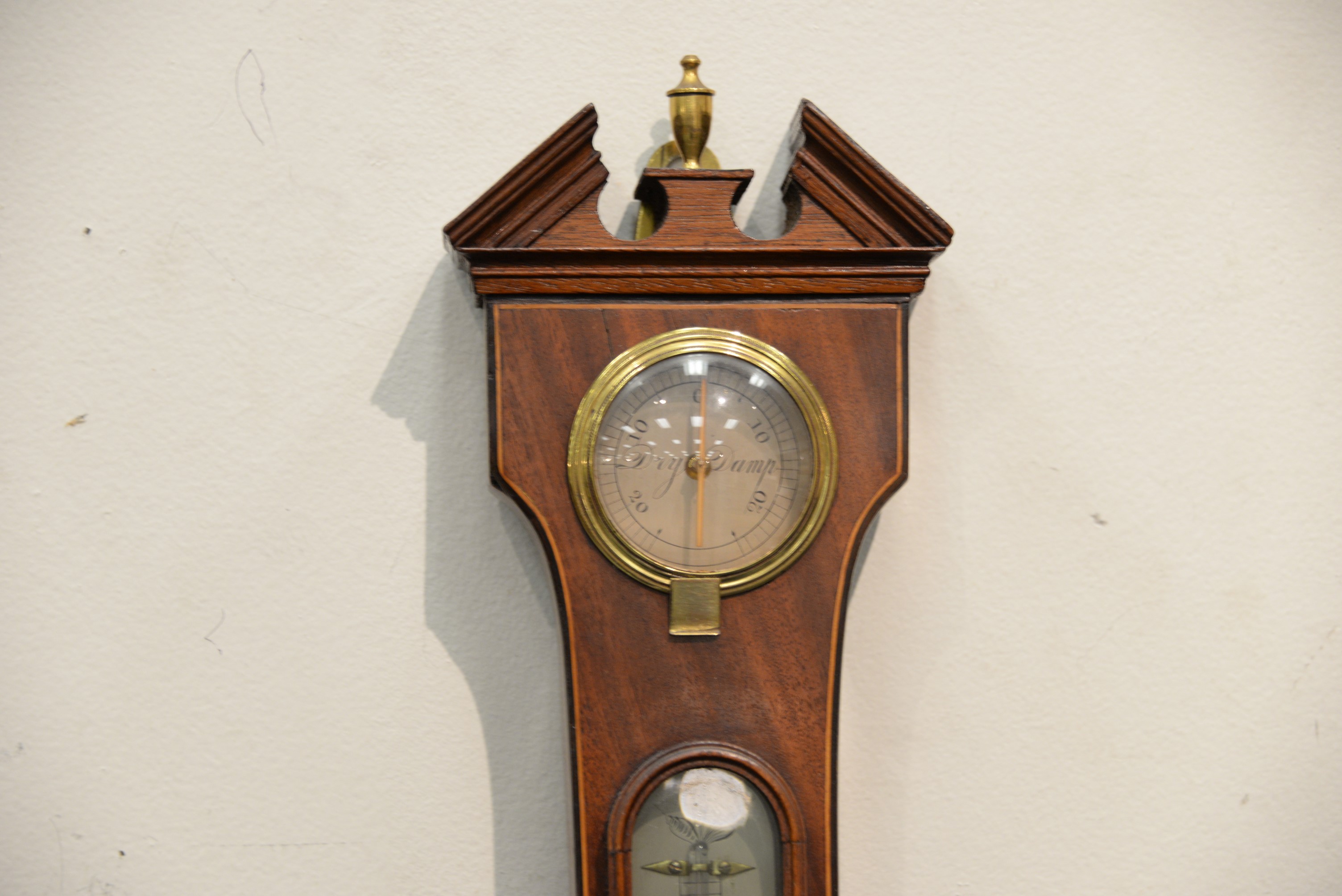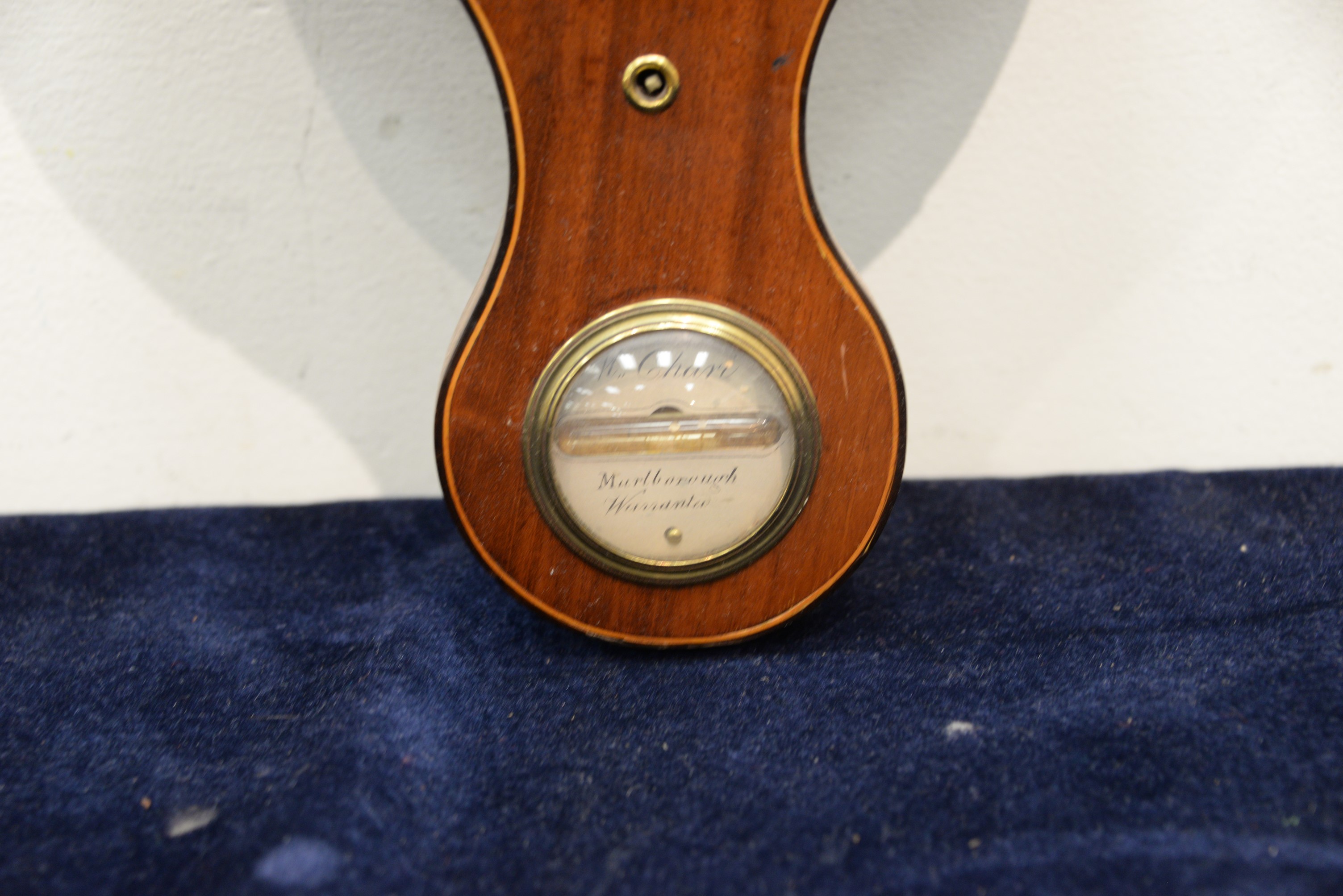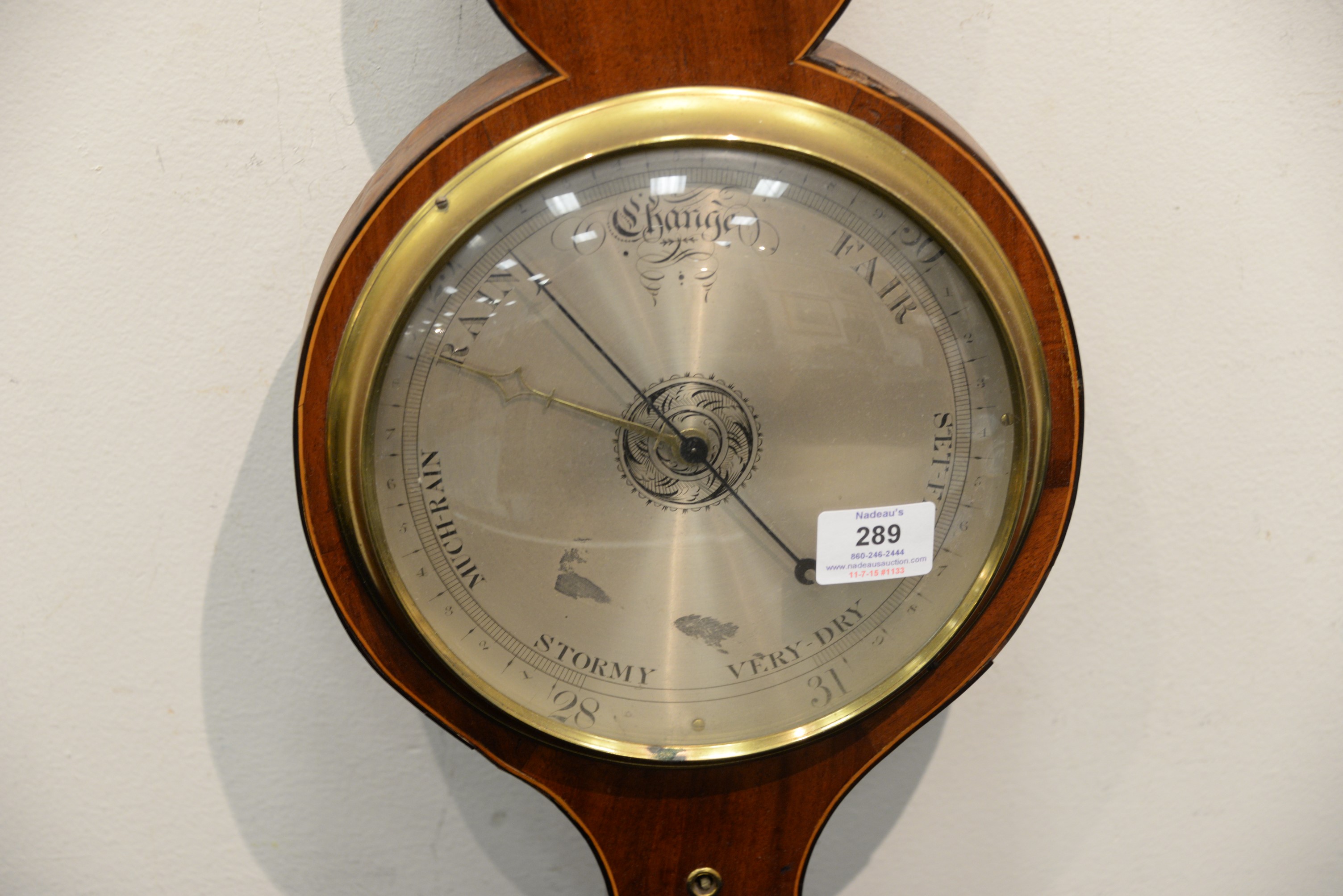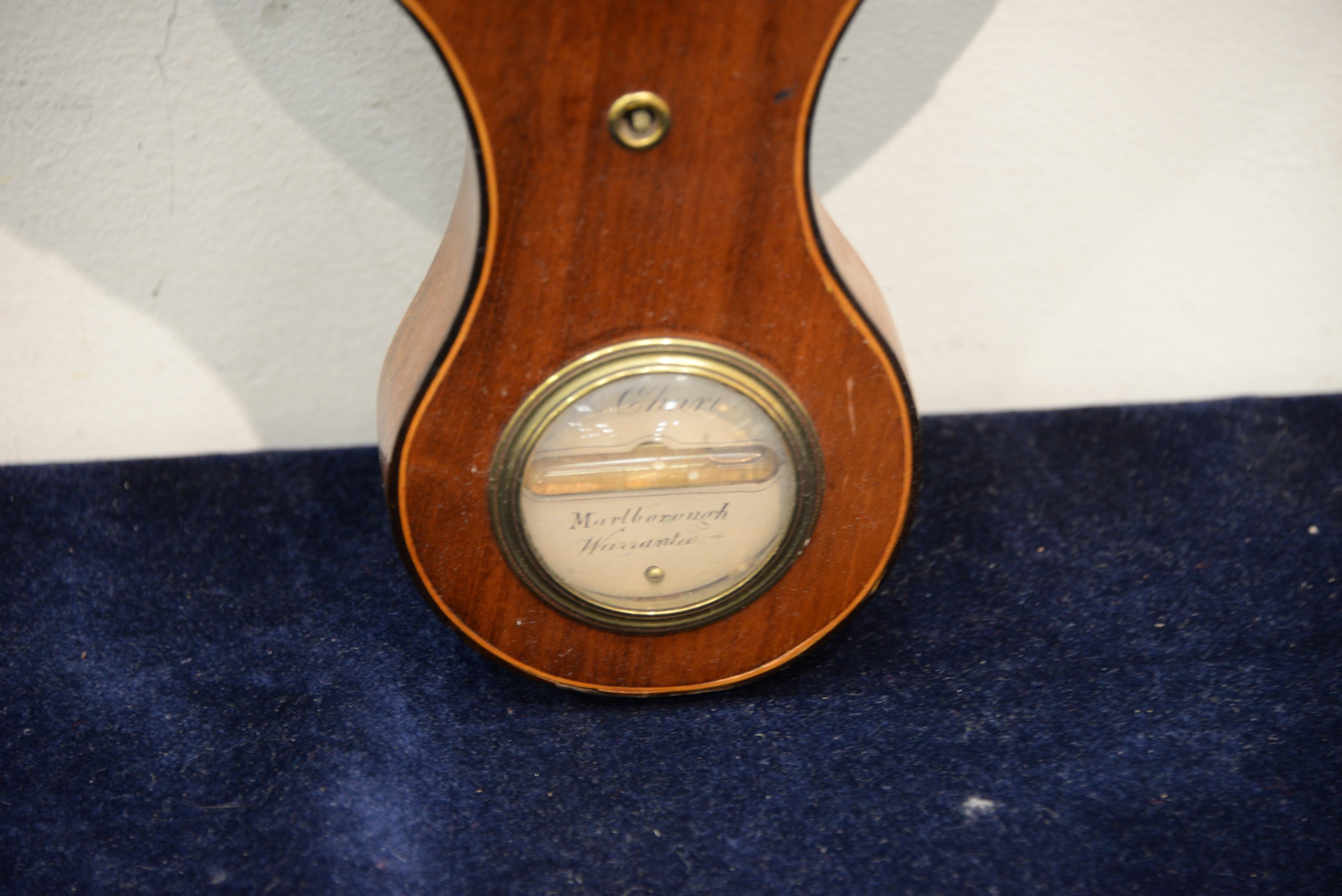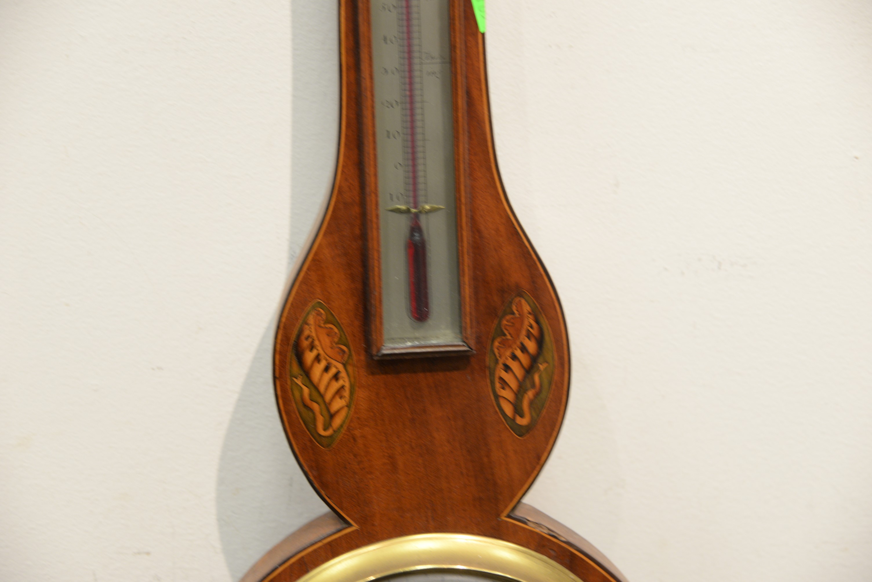 Lot 289: Mahogany barometer marked M. Chari Marlborough with line and conch shell inlays. ht. 38 1/2 in. wd. 9 3/4 in.