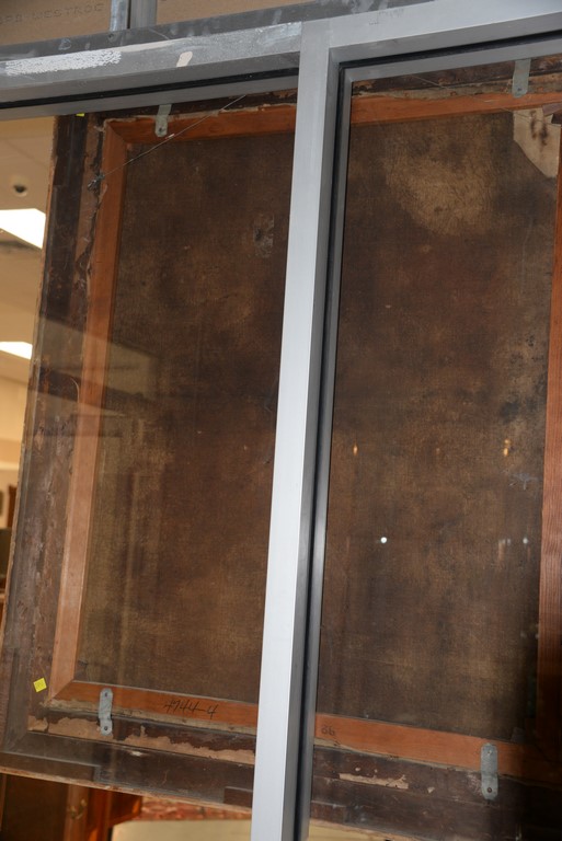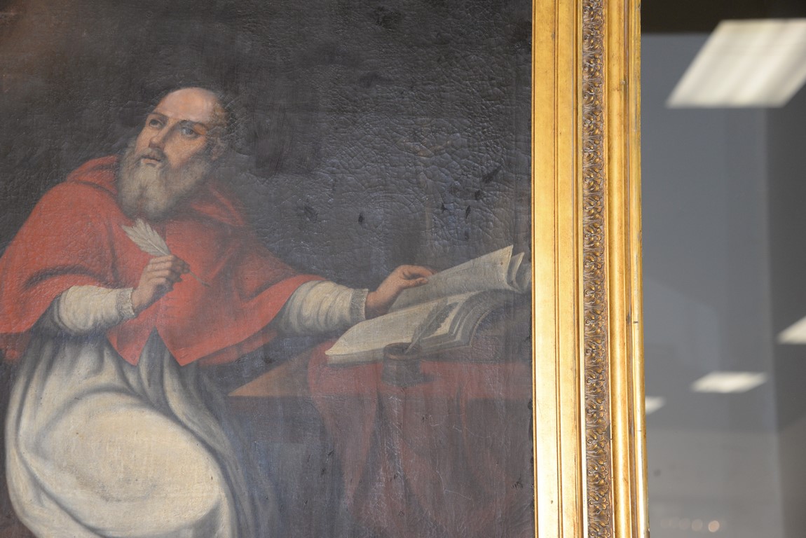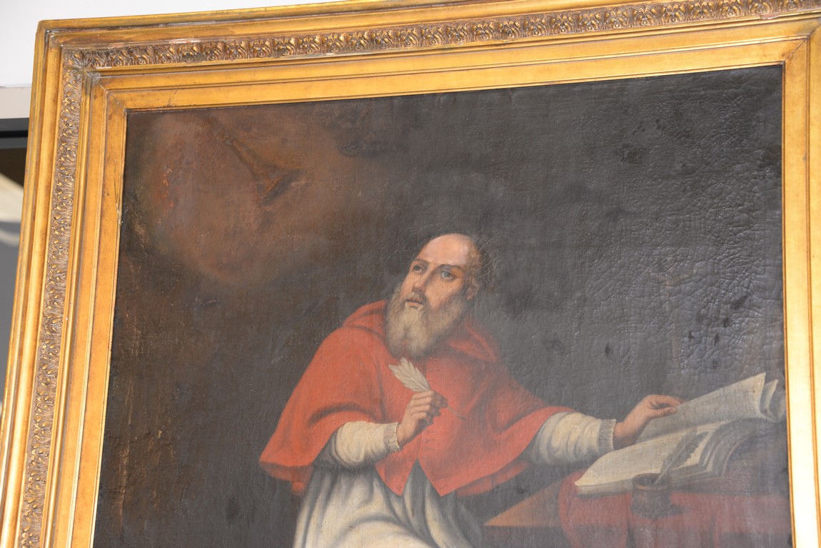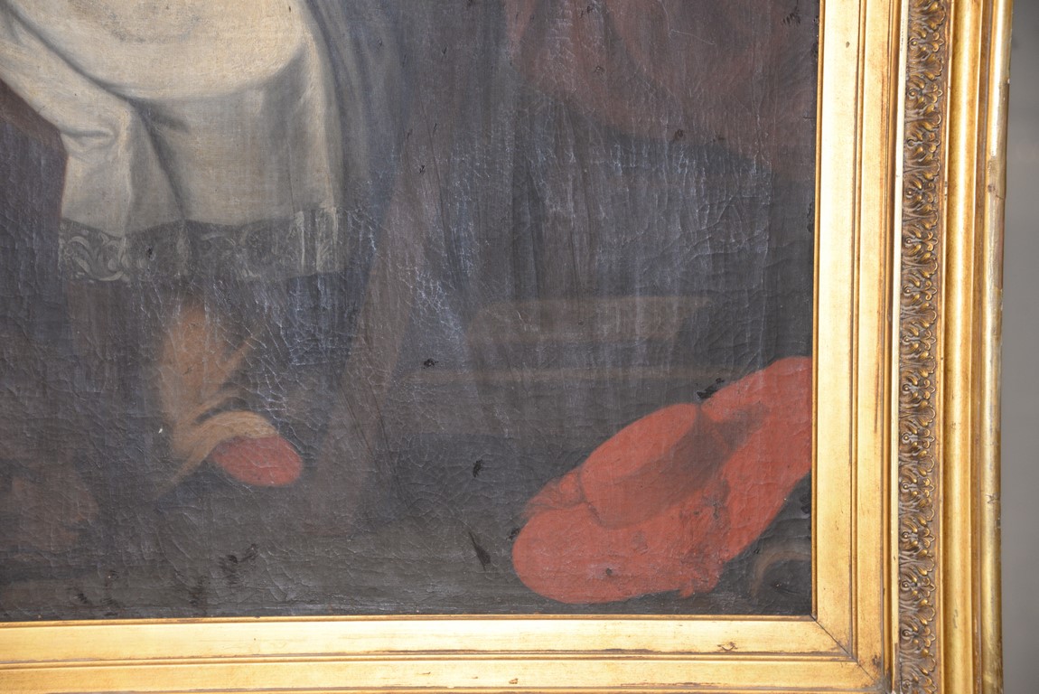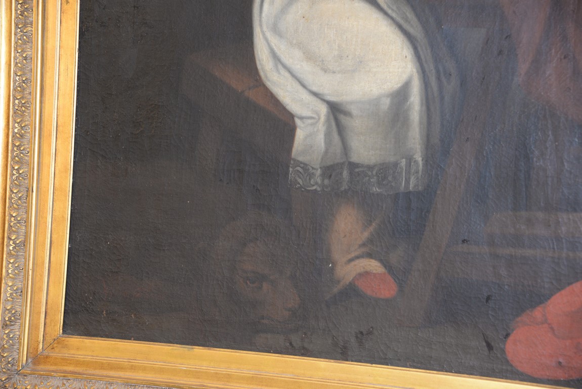 Lot 289: OLD MASTER Saint Jerome writing at desk with cardinal hat and lion on floor oil on canvas unsigned 18th/19th century 39 x 32