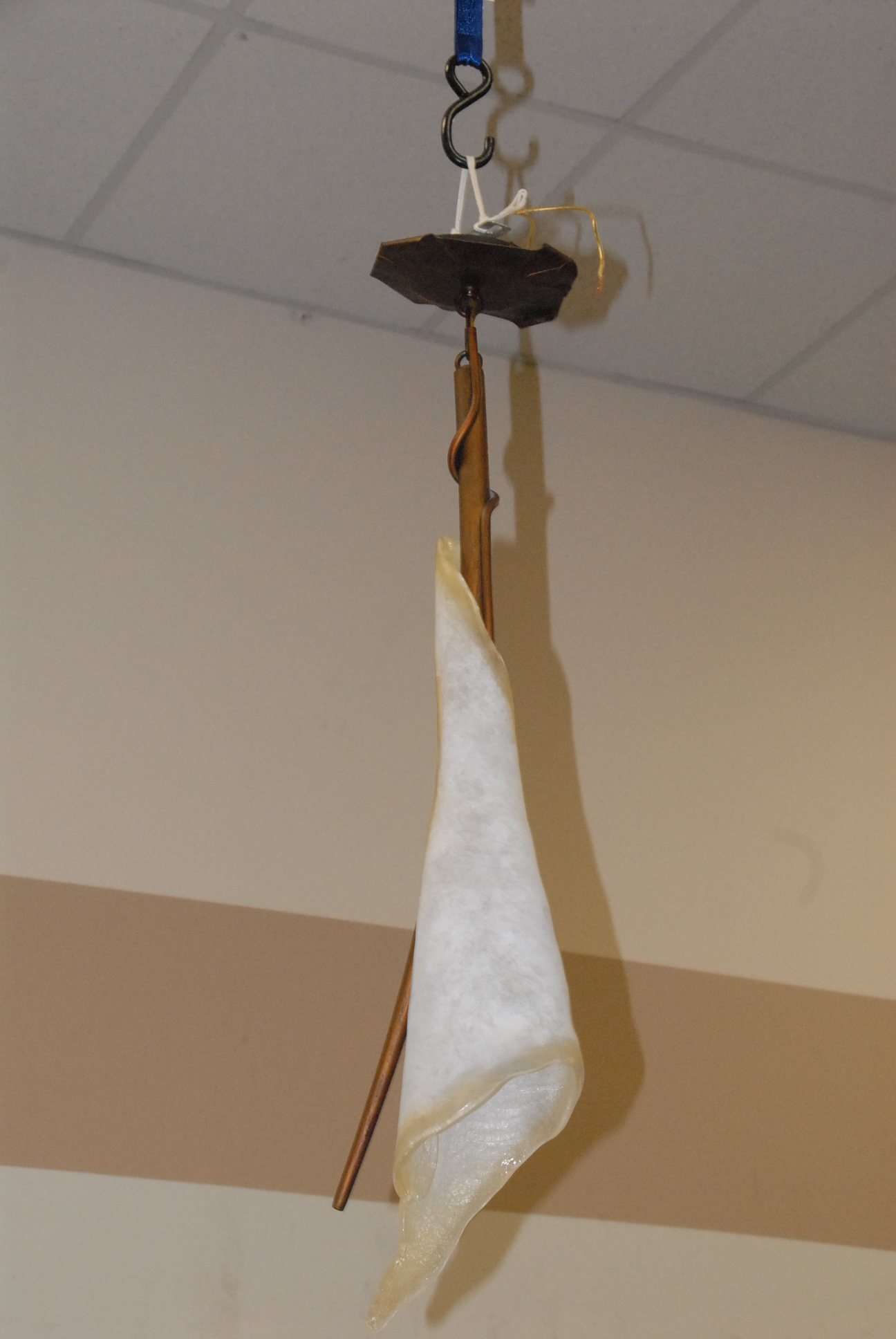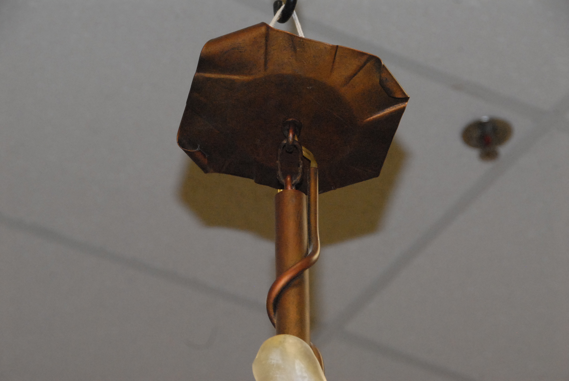 Pair of hanging lights, metal with free form glass, ht. 32 1/2.