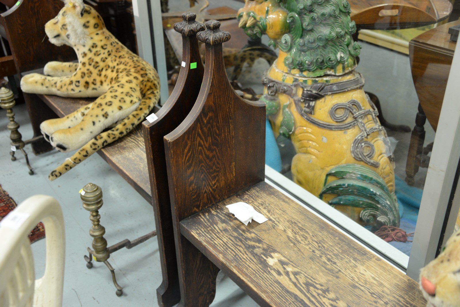 Lot 289: Pair of oak gothic style benches.wd. 55 in.