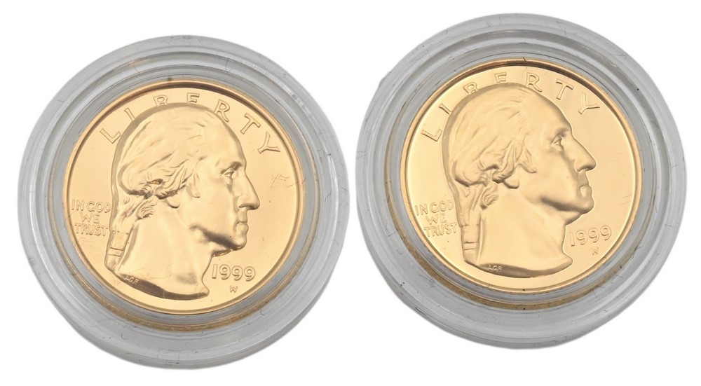 Two 5 Dollar Gold, 1999 George Washington, to include one uncirculated and one proof.