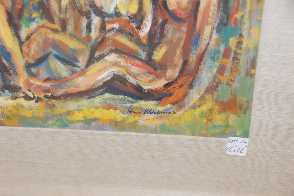 Two watercolor and gouache on paper Louis Wolchonok 1898-1973, five nude woman and running, both signed lower right Louis Wolchonok, sight size 16 x 12 and 19 x 23