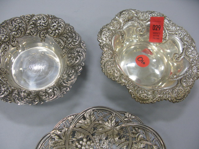 3 small sterling silver dishes, one reticulated