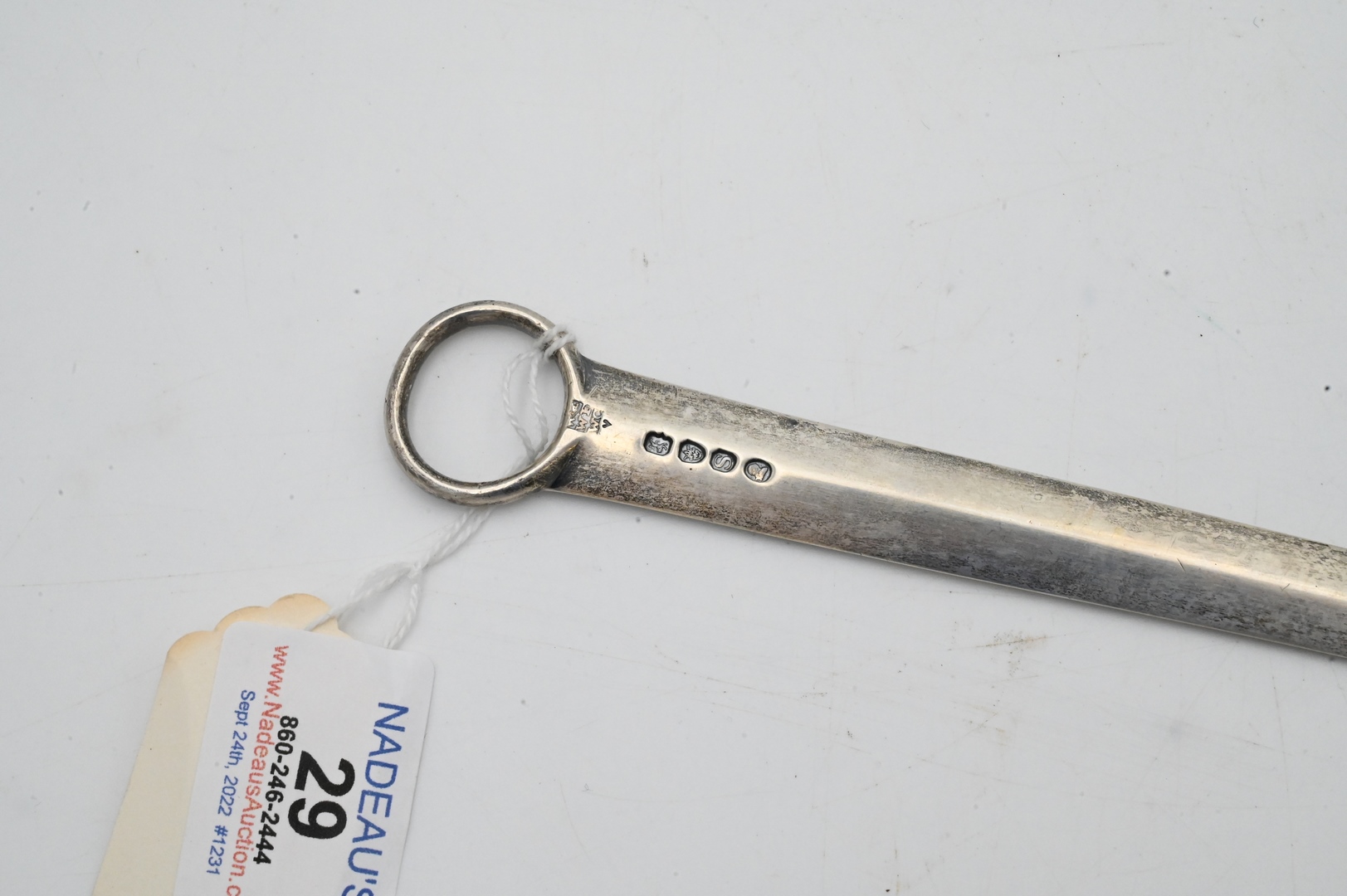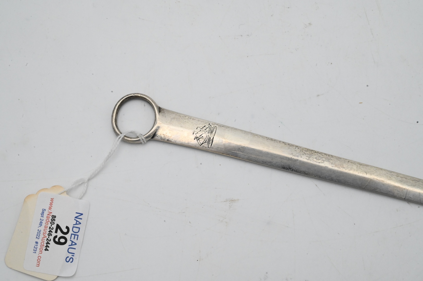English Silver Skewer, probably Wm. Elrey, Wm. Feran and Wm. Chawner, 1808 – 1809, length 13 inches.