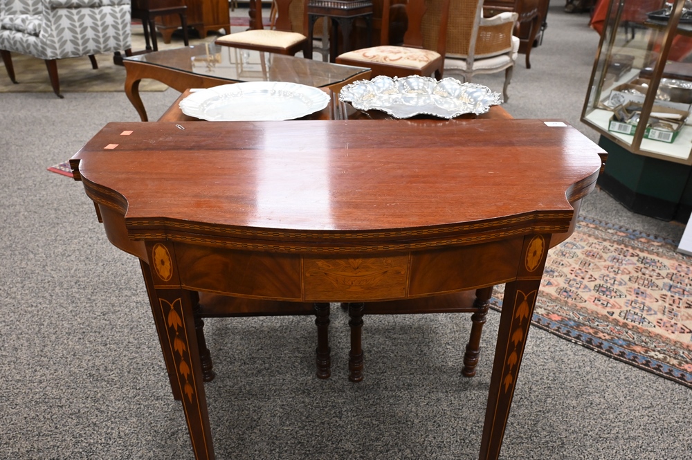 Lot 29: Fineberg Custom Mahogany Federal Style Games Table, with drawer, height 29 inches, top 18″ x 36″