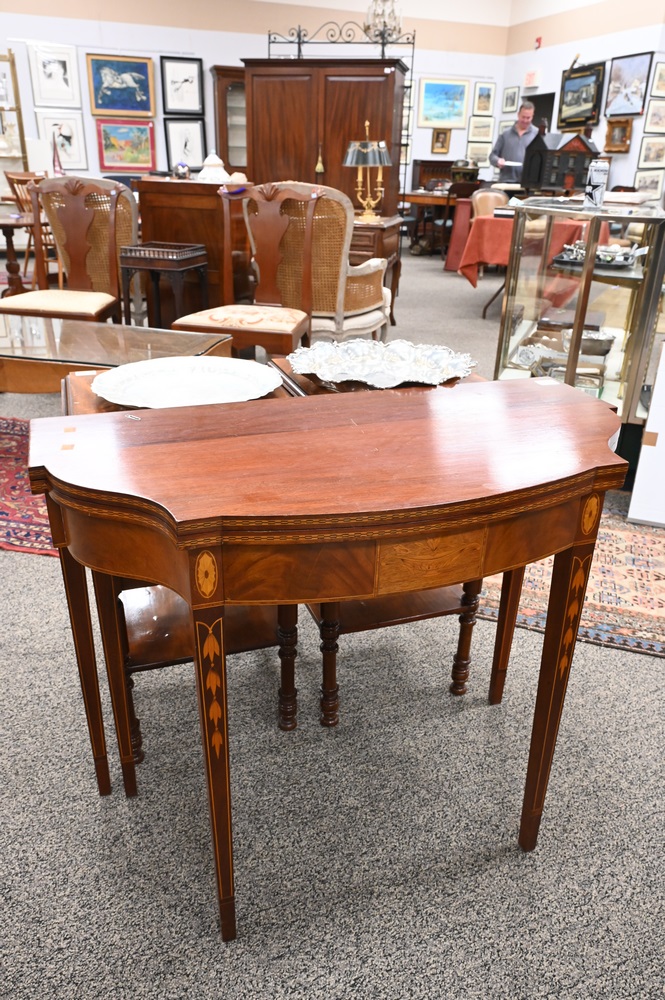 Fineberg Custom Mahogany Federal Style Games Table, with drawer, height 29 inches, top 18″ x 36″