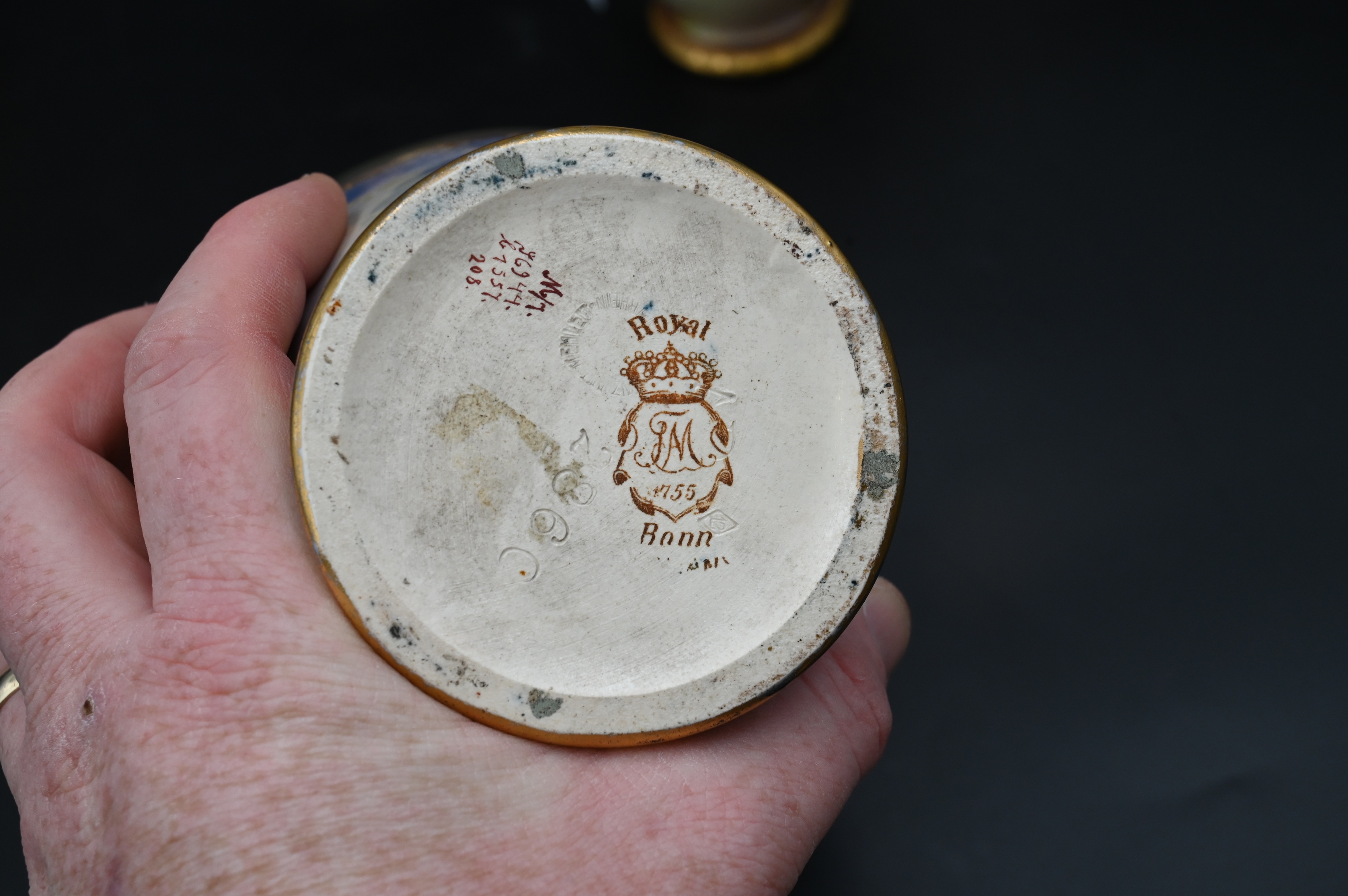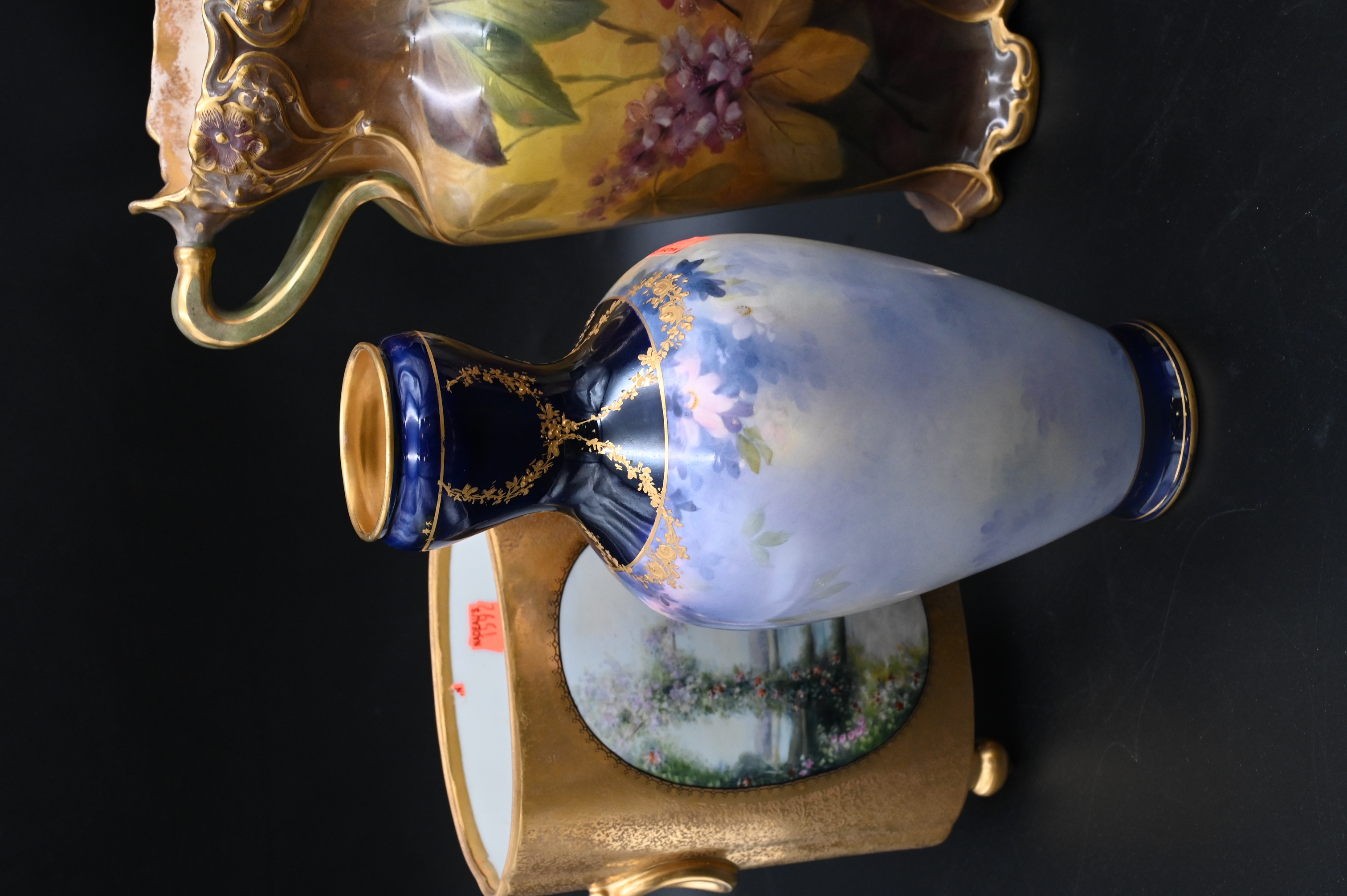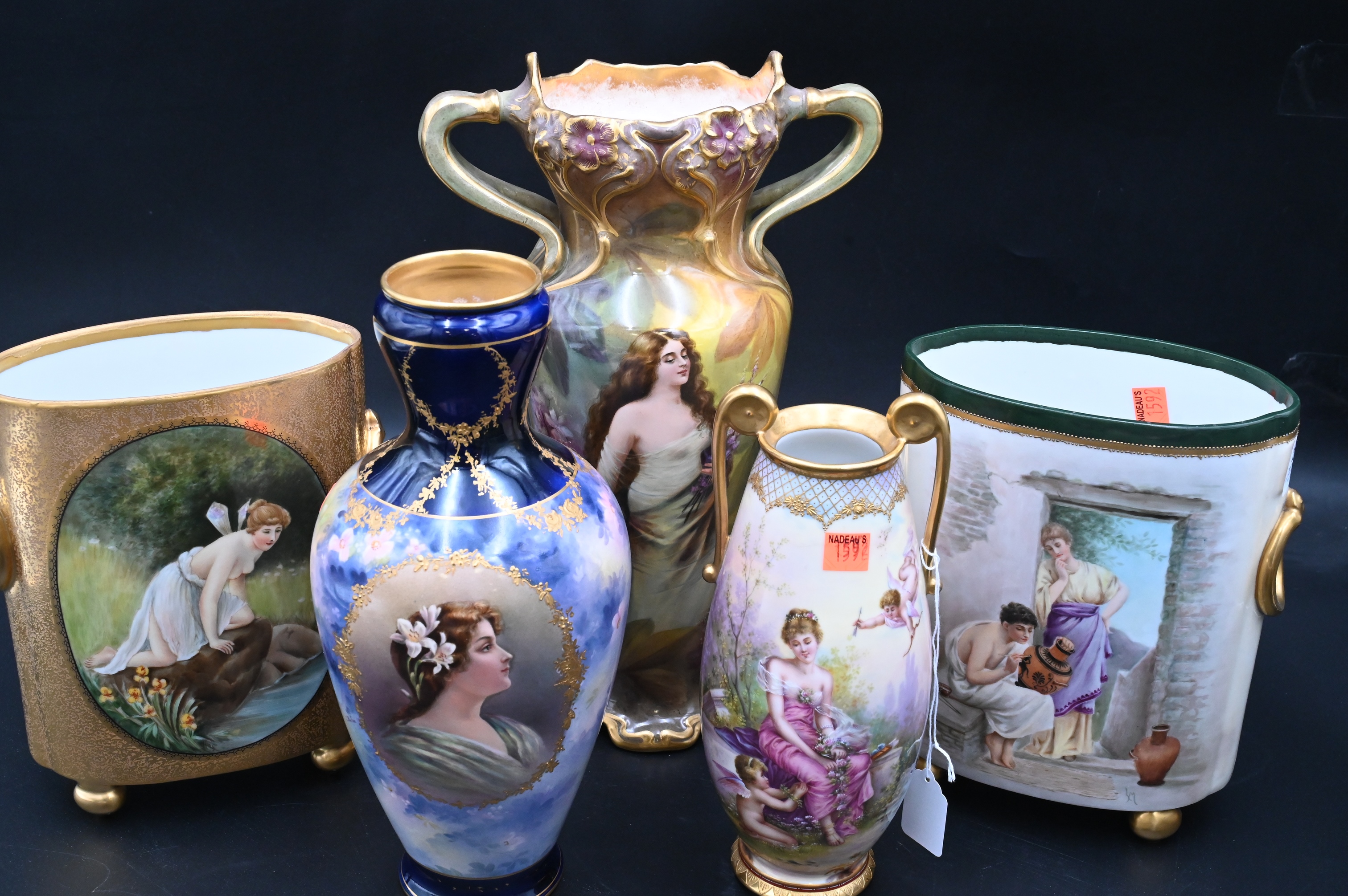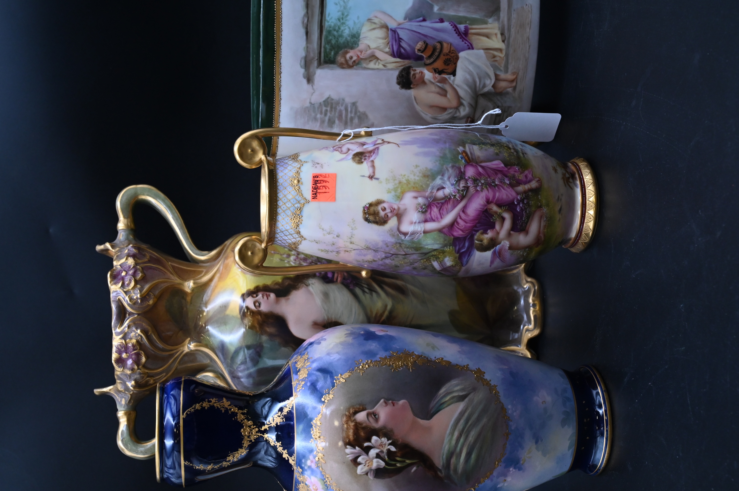 to include two limoges portrait vases, two Royal Bonn, along with pictorial vase having gilt handles