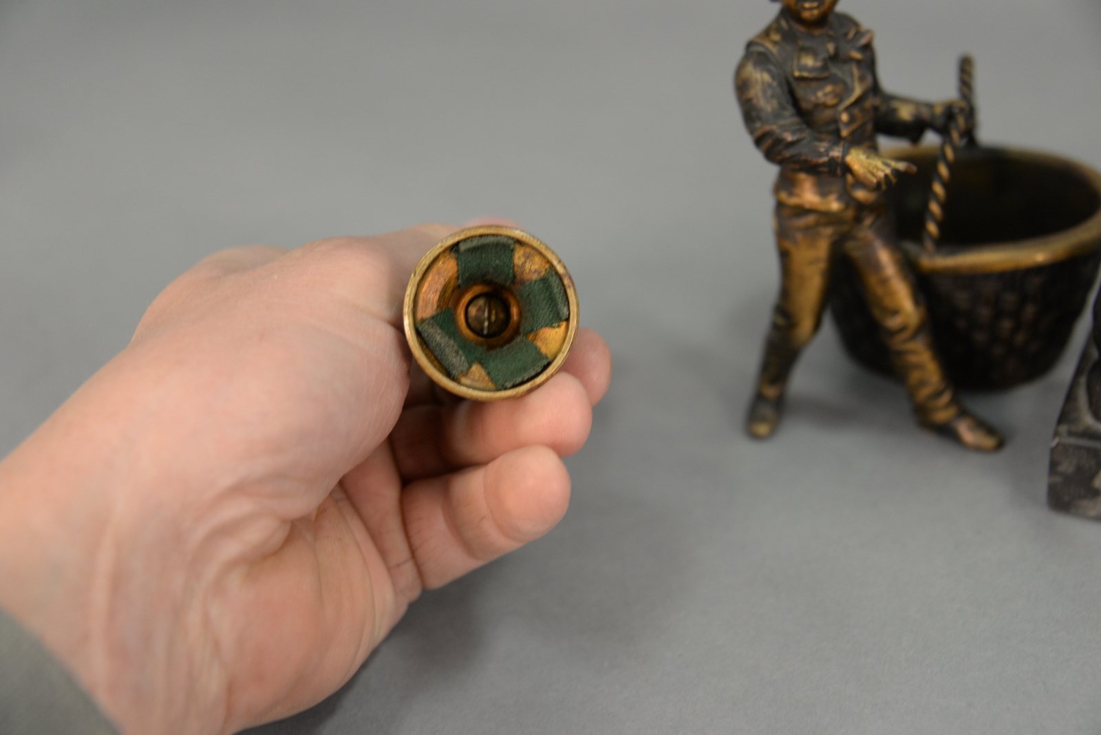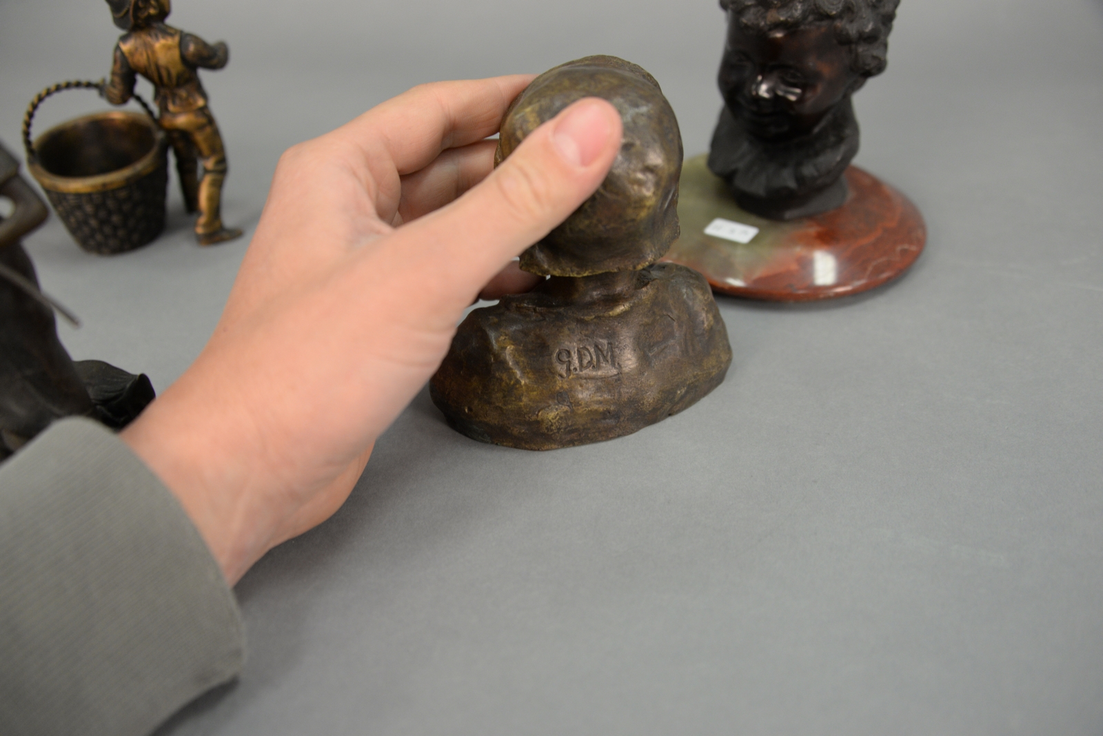 Lot 29: Five small bronzes including two bronze busts, a young hiking boy, boy with a basket, and a peasant girl with two geese. hts. 4 1/4i…