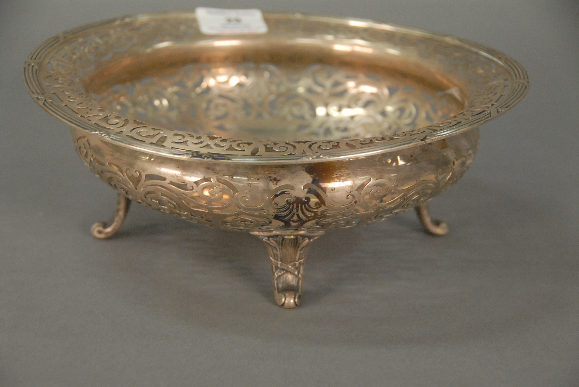 Large sterling silver reticulated footed bowl, dia. 10in. 21.1 t oz.