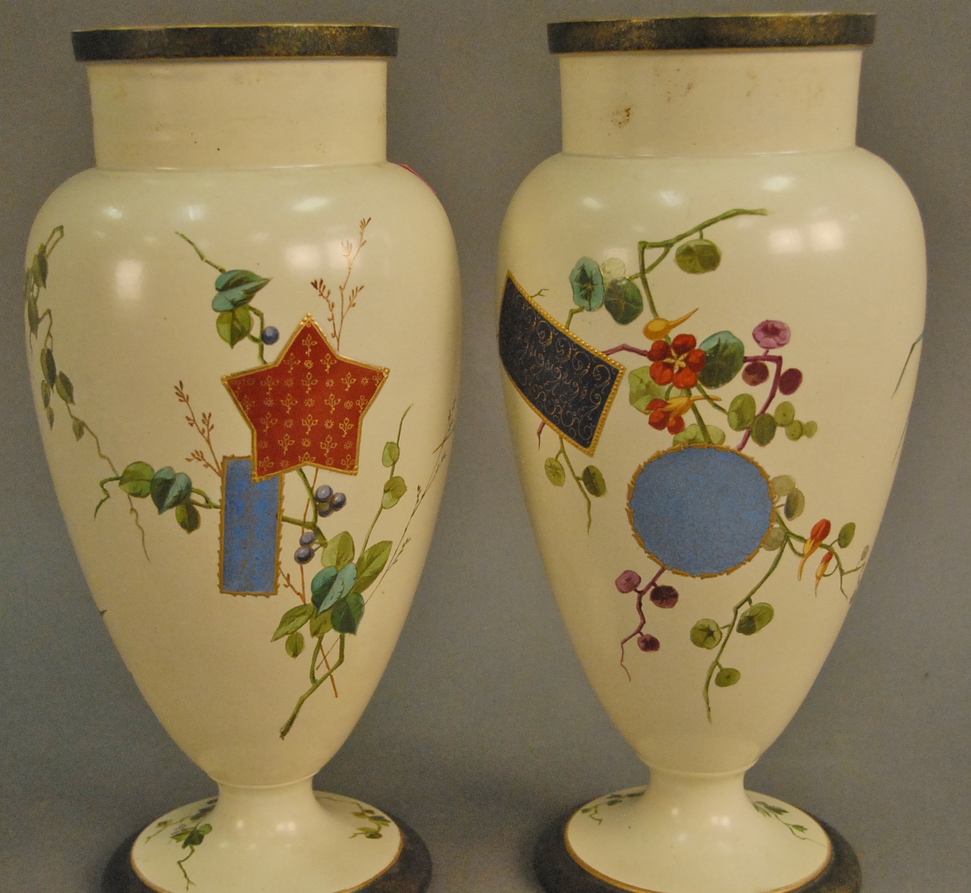 Pair Creil Montereau bird and flower painted vases.ht. 13 14 in.