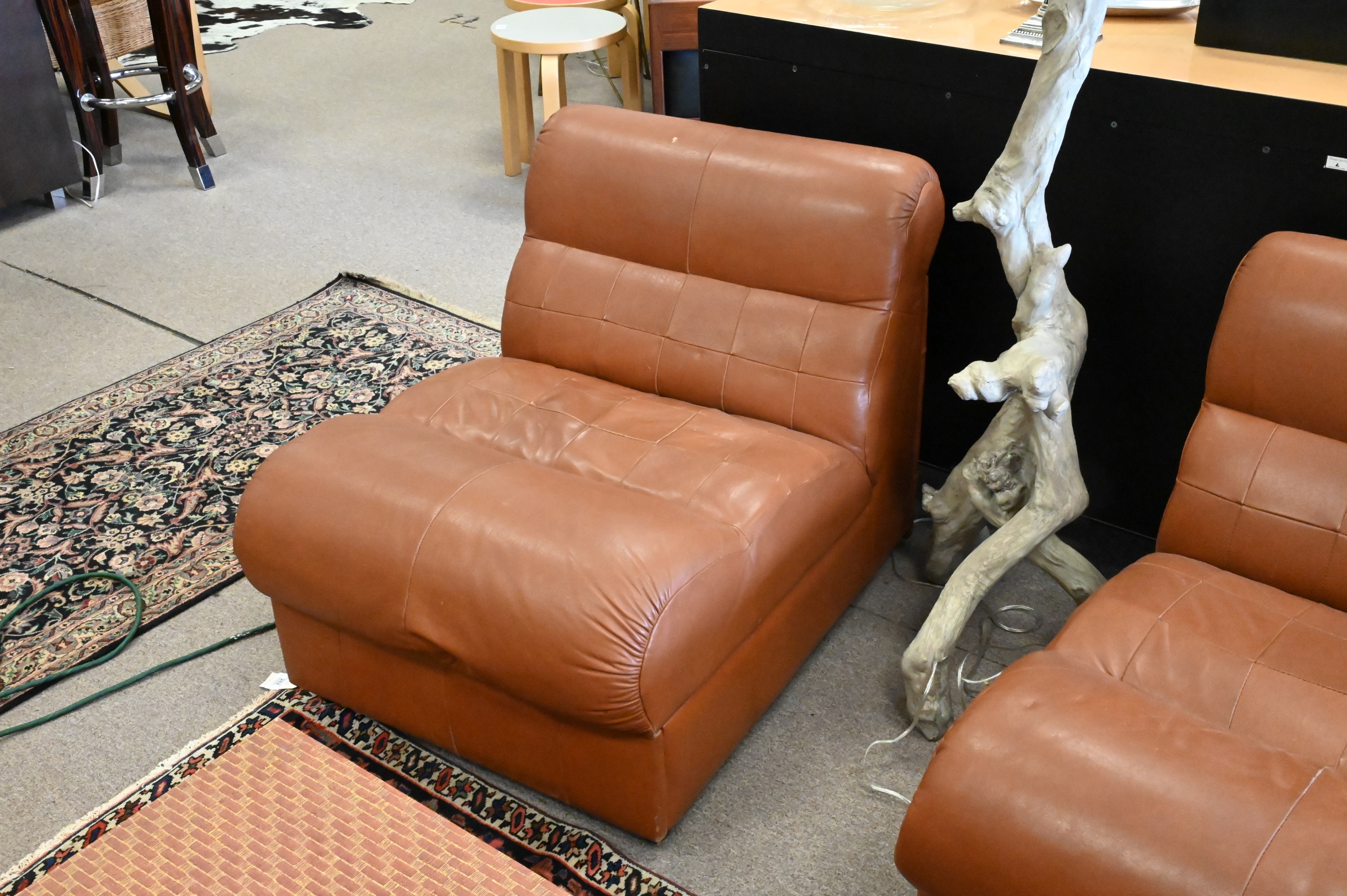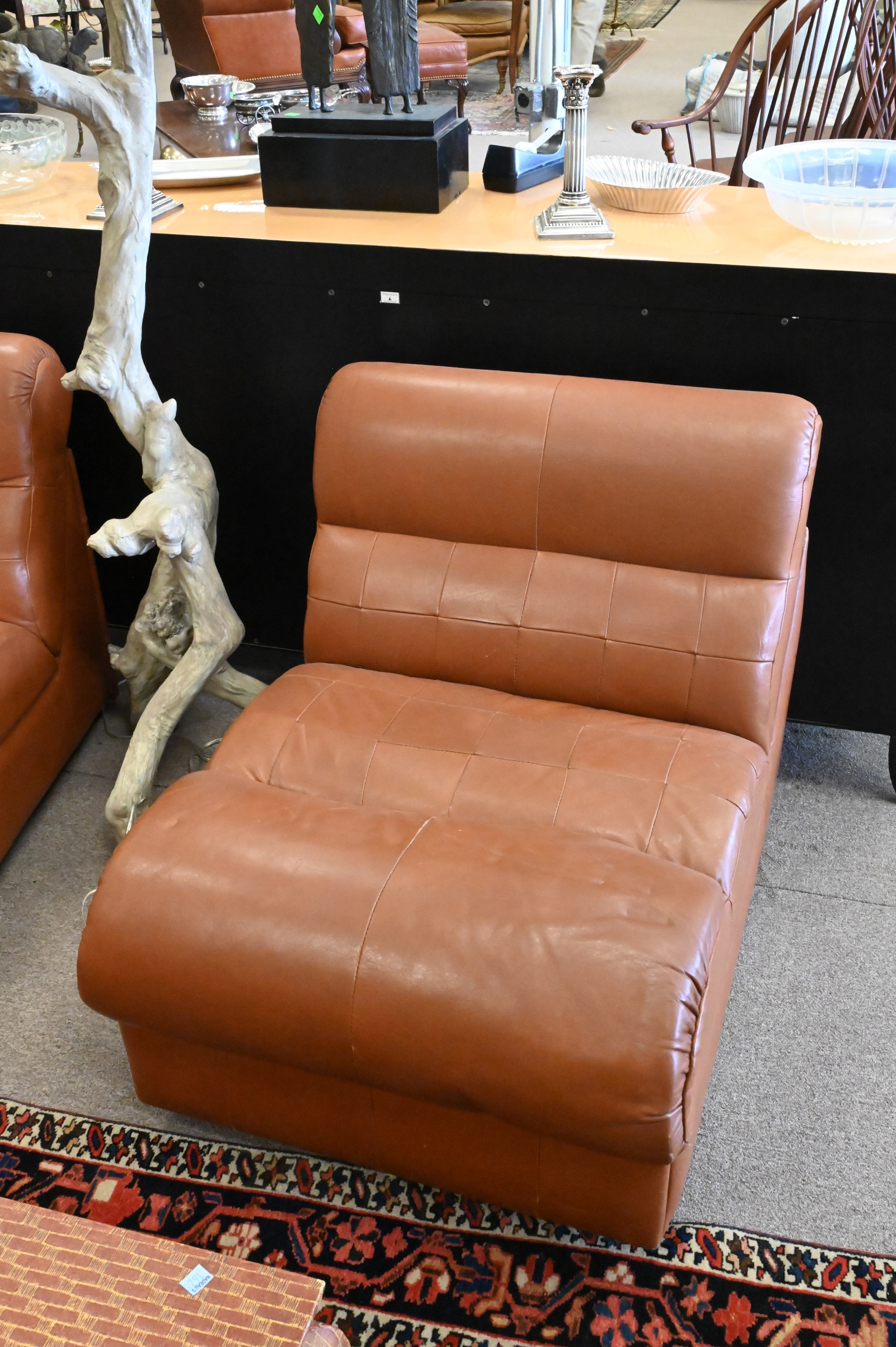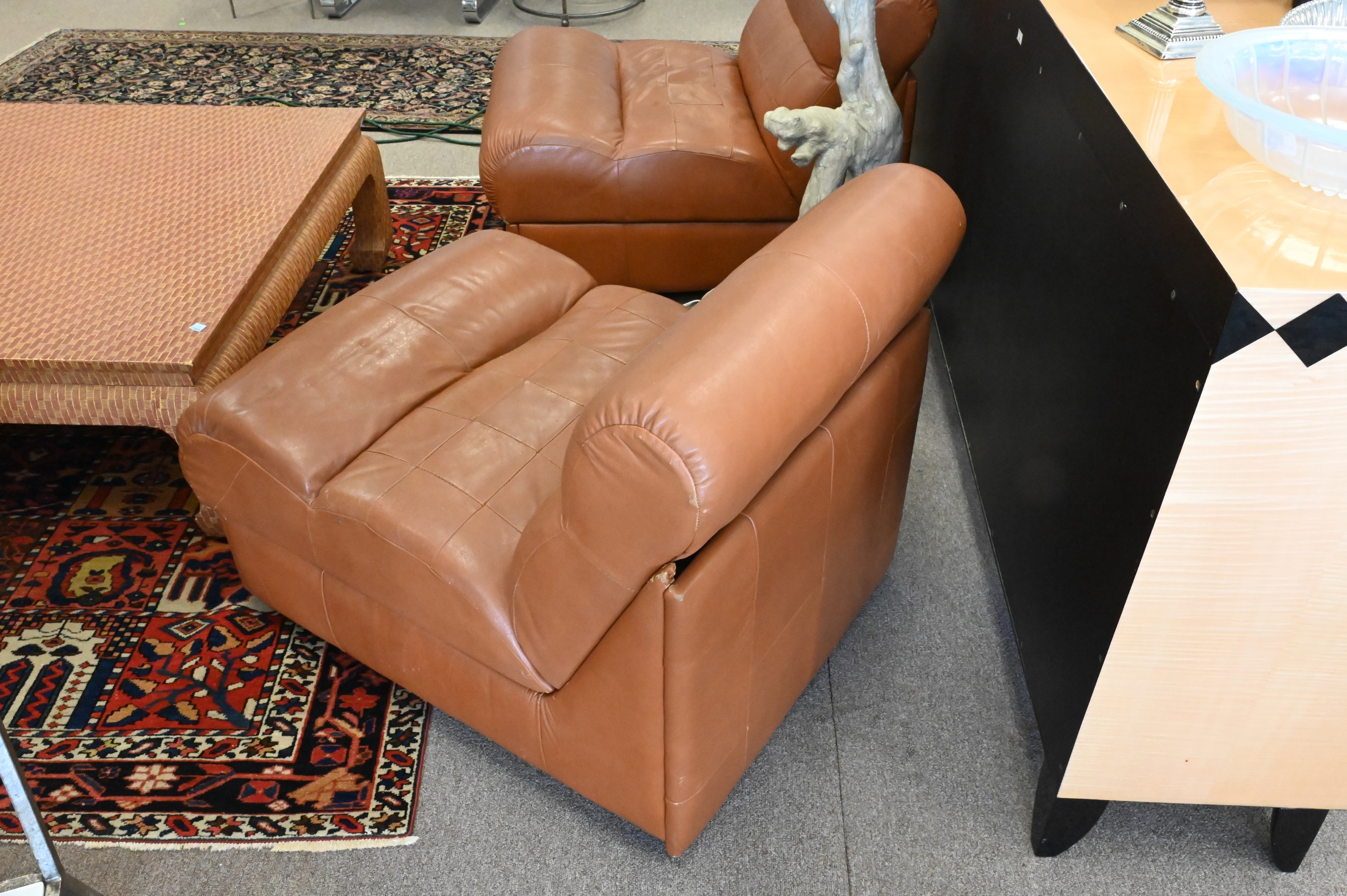 Pair of Percival Lafer Leather Slipper Chairs, height 27 inches, width 26 inches, seat height 16 inches.