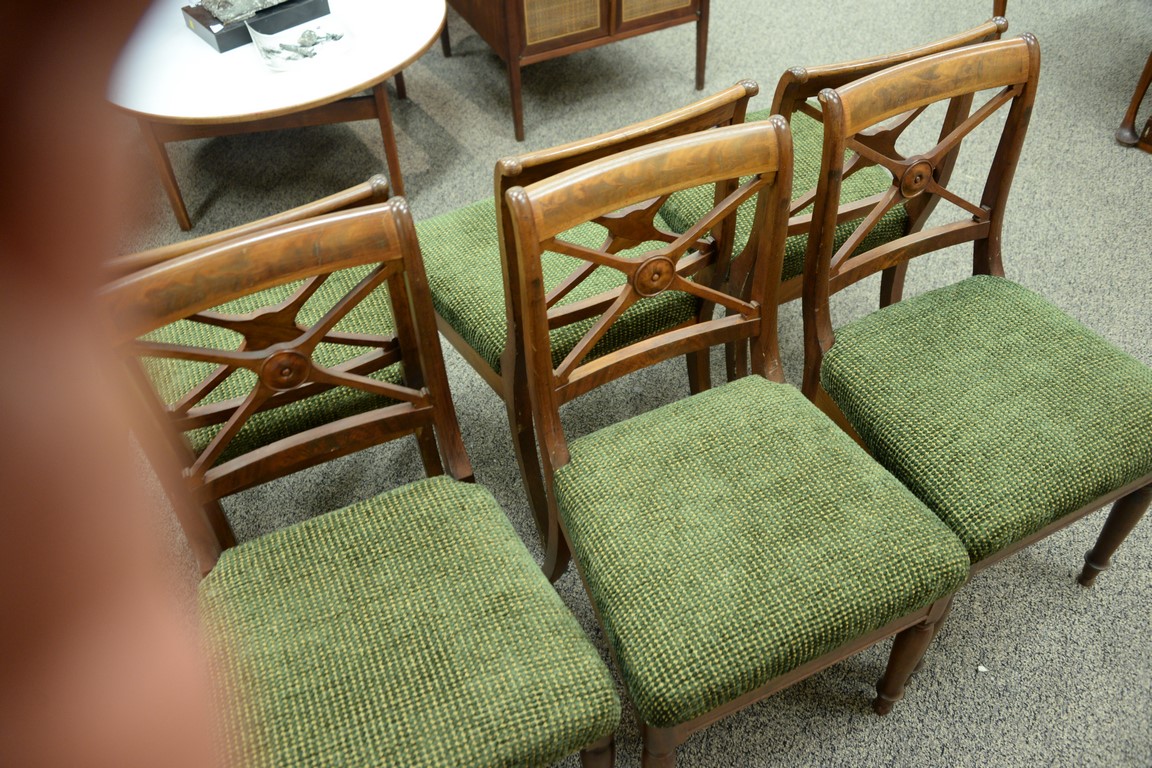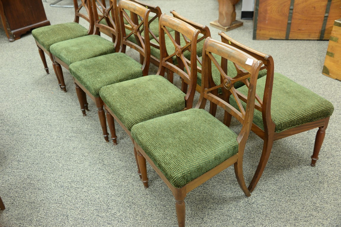 Lot 29: Set of ten mahogany Sheraton side chairs with X backs and upholstered slip seats, probably first quarter 19th century. height 32 in…