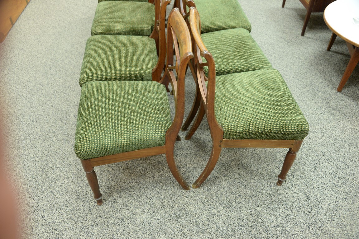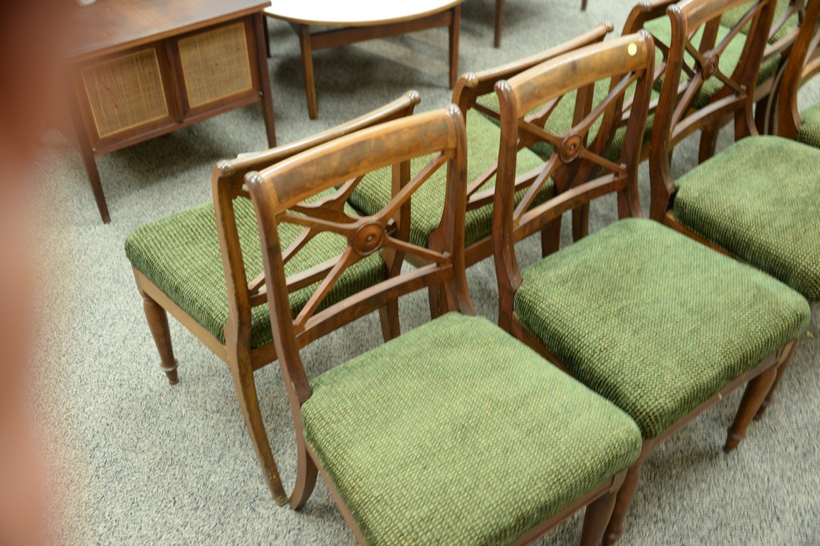 Set of ten mahogany Sheraton side chairs with X backs and upholstered slip seats, probably first quarter 19th century.