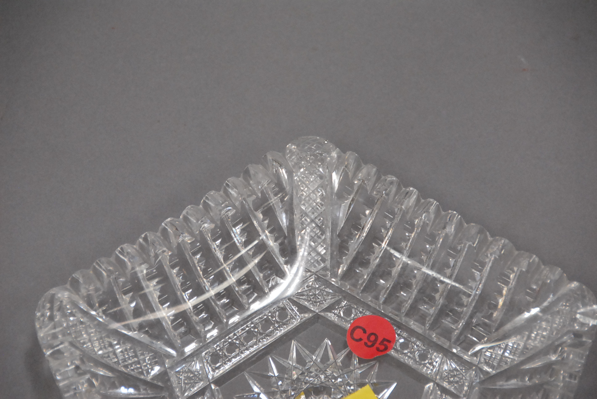 Signed cut glass dish signed with star and circle.