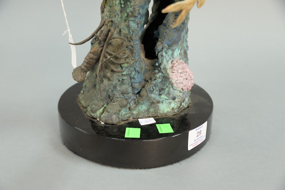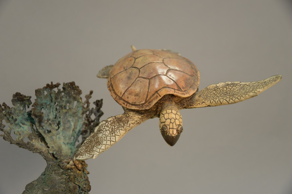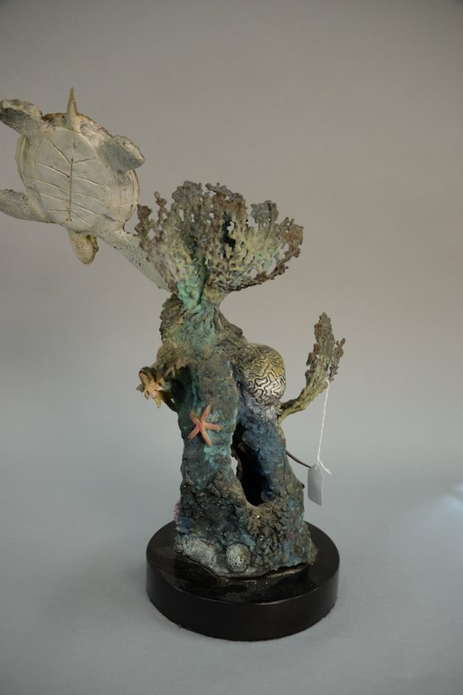 Lot 29: Stewart Wegner bronze sea turtle sculpture Turtle Reef 1/75 signed Wegner with Mystic Maritime Gallery label on back, retail 3,00…