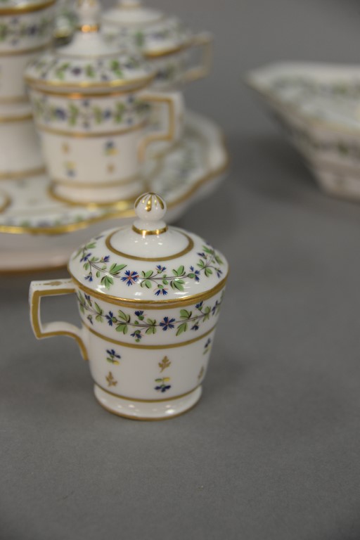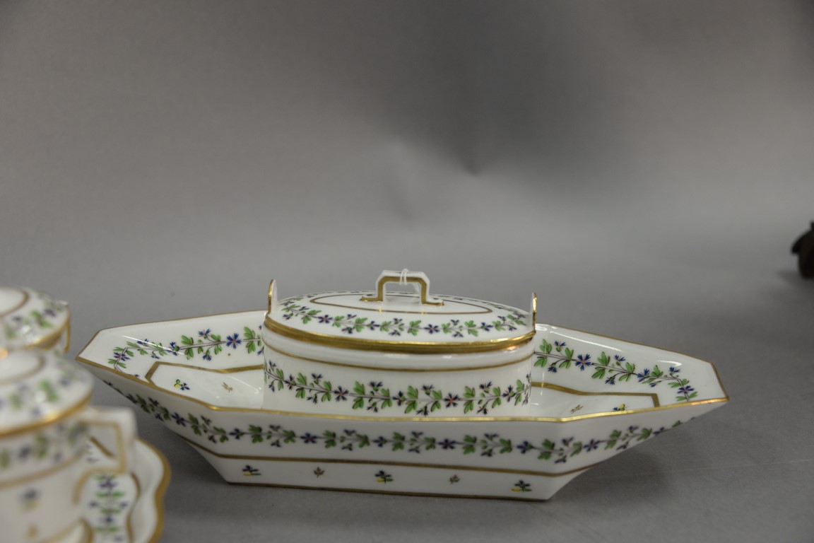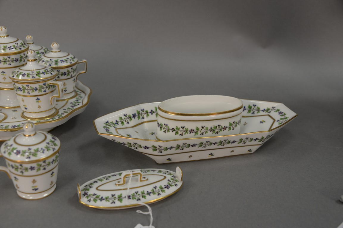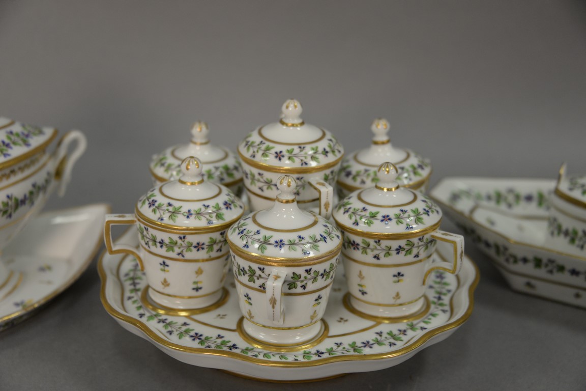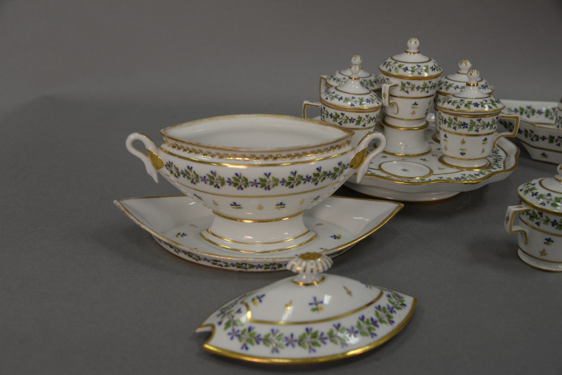 Lot 29: Ten piece Paris Porcelain condiment set including covered sauce boat, condiment tray with seven covered containers, and one covered …