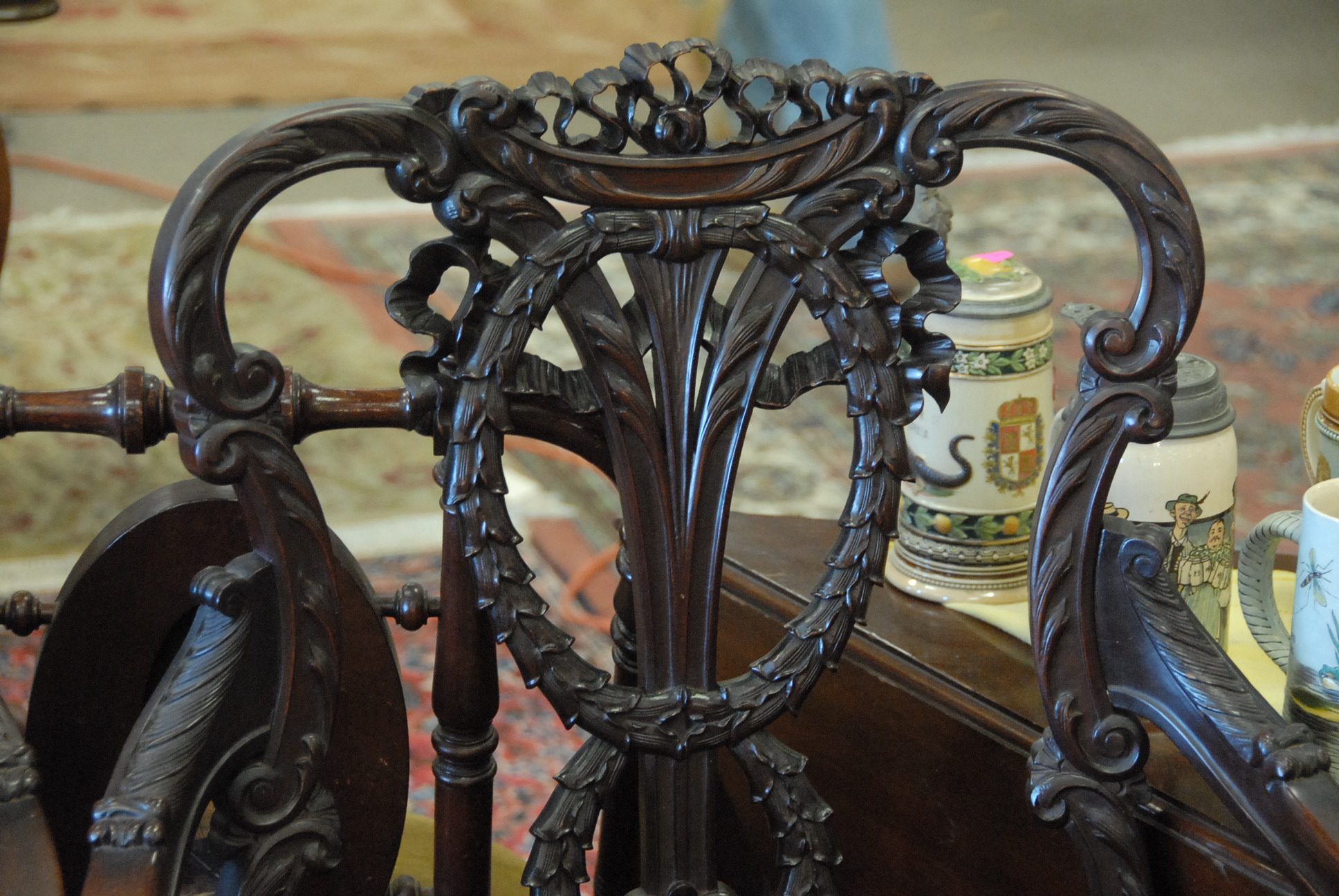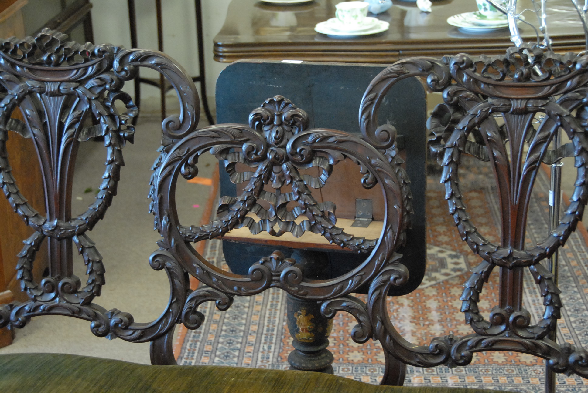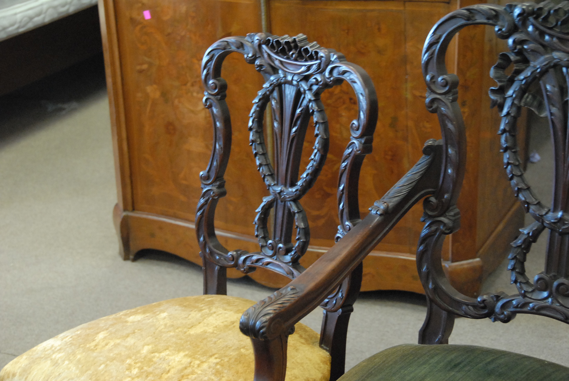 Lot 29: Three piece set to include mahogany settee, armchair, and side chair, all with upholstered seats, settee: lg. 53in.