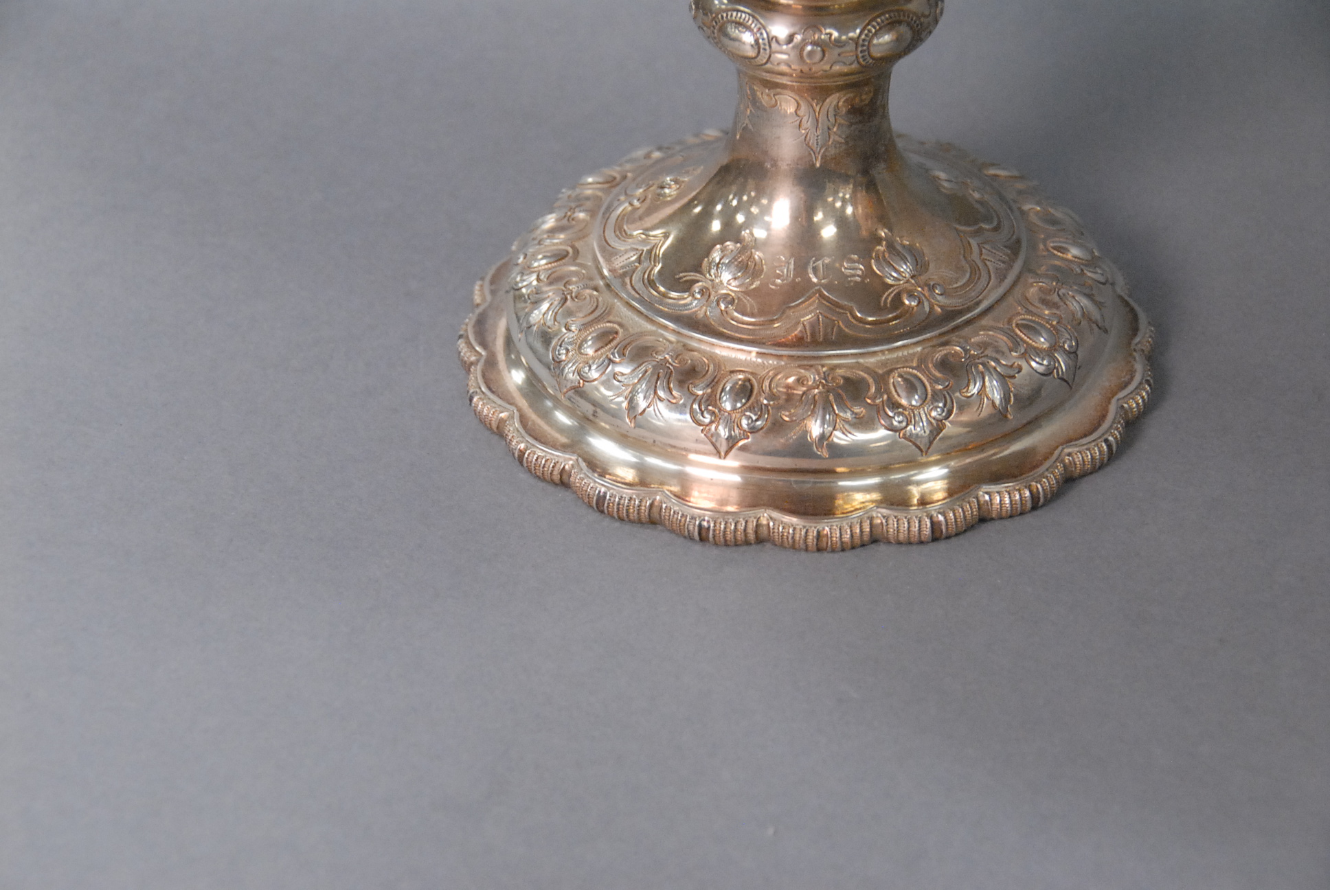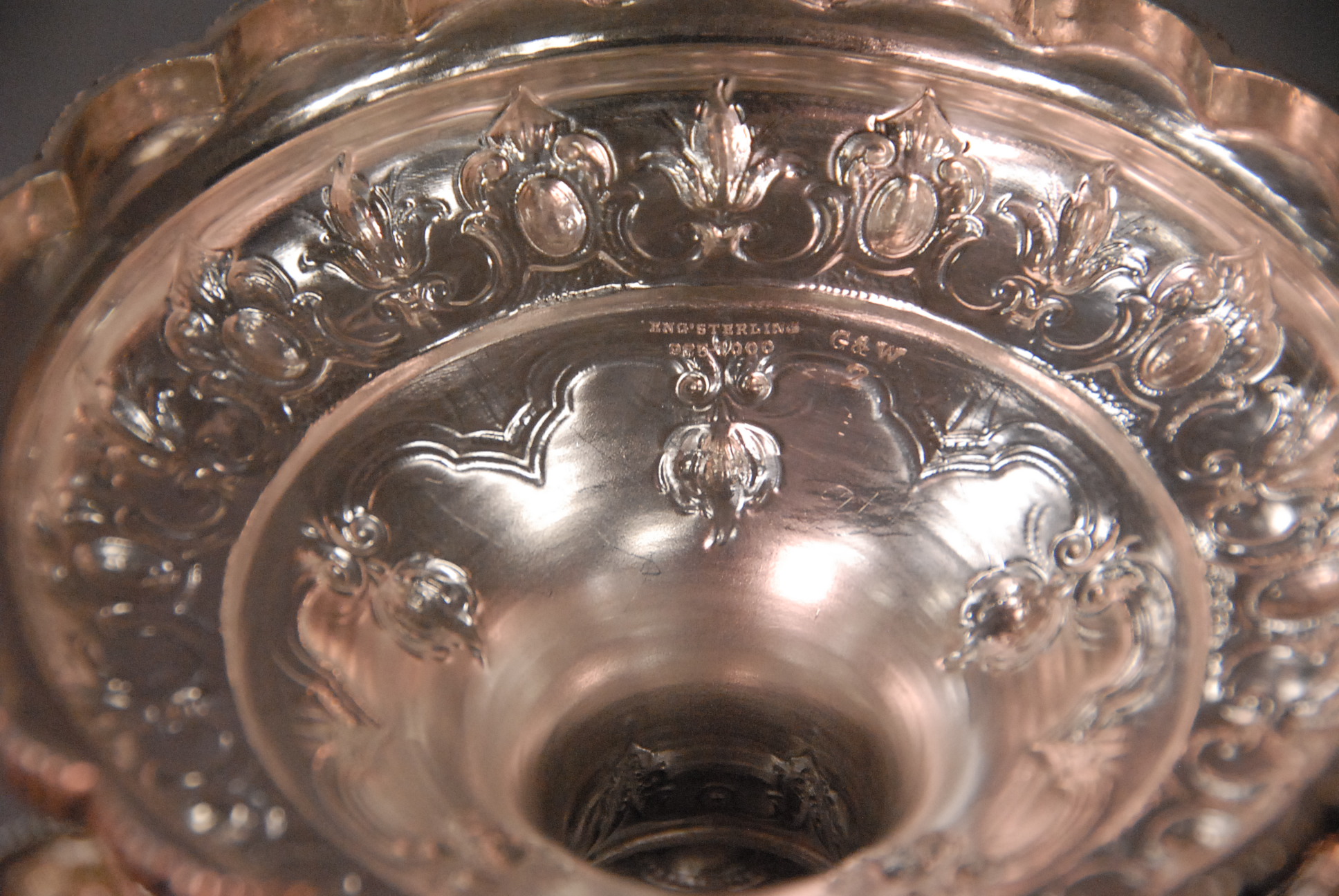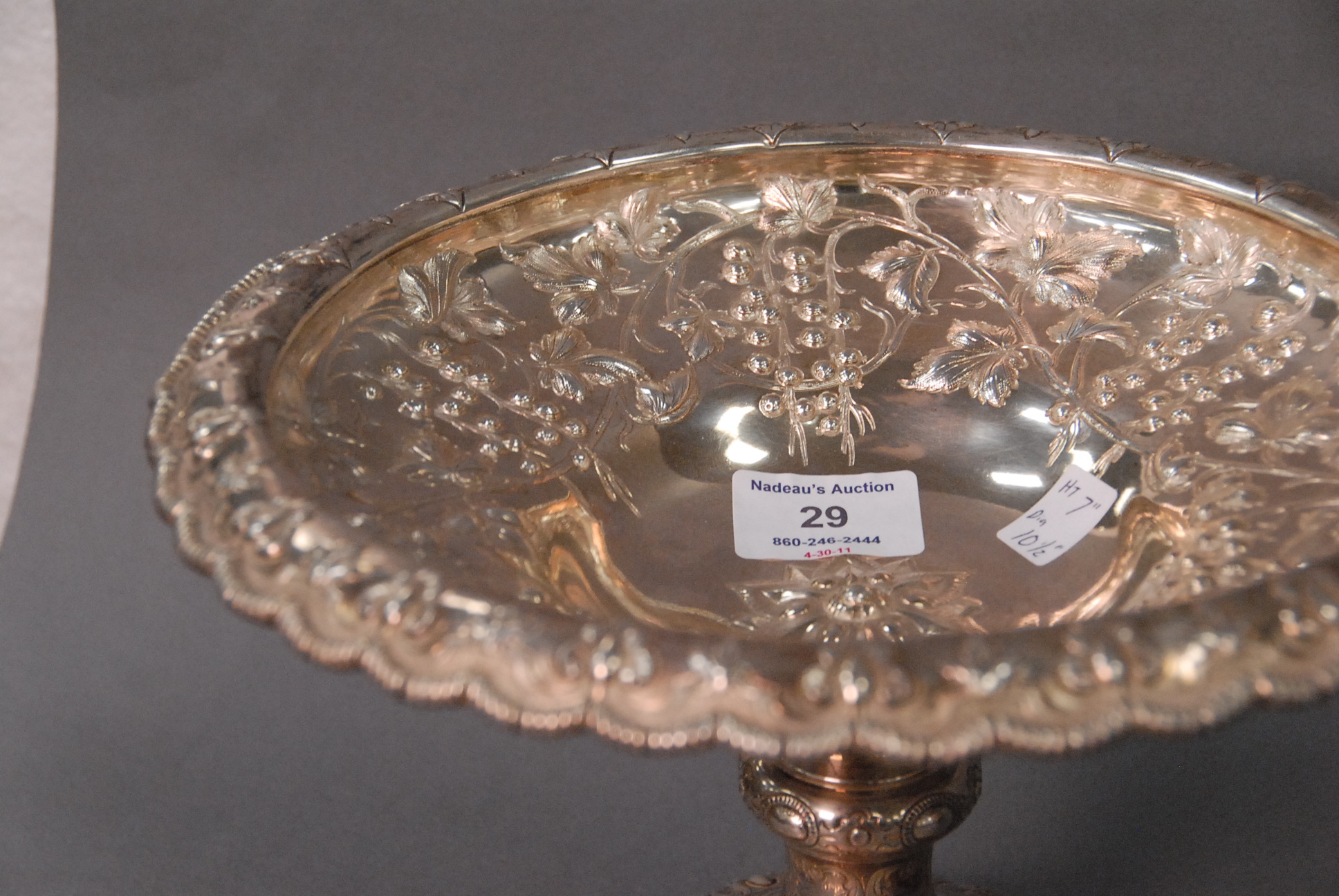 Tiffany & Co. sterling silver compote with repousse body and a base, marked G & W, 25.7 troy oz.