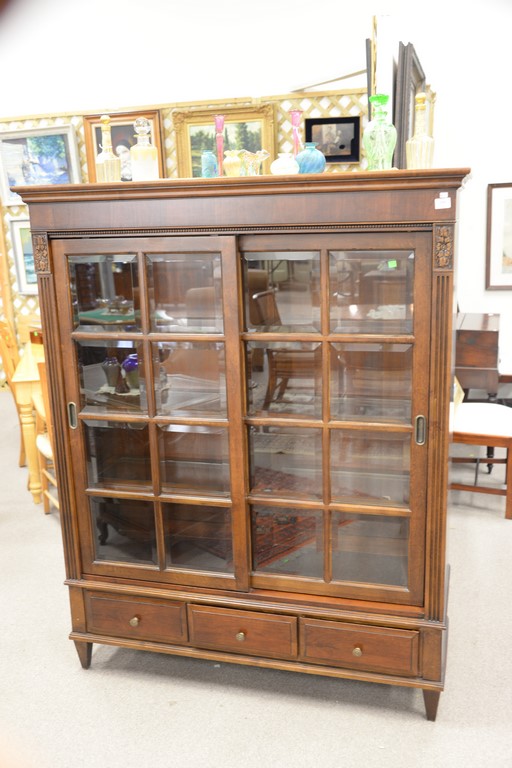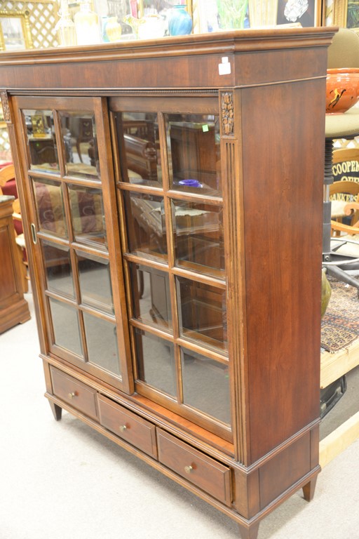 Lot 290: Ethan Allen cherry bookcase with two glass sliding doors. ht. 65in., wd. 50in., dp. 17in.