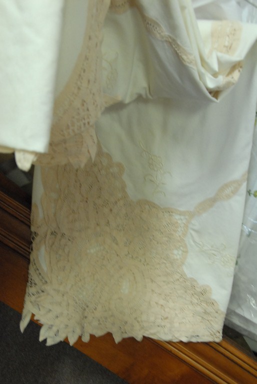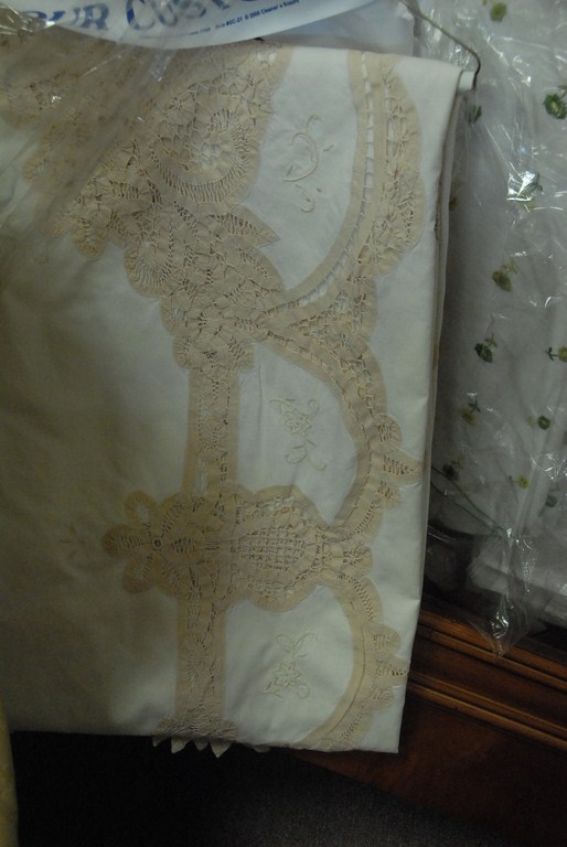 Five table covers straight from cleaners.