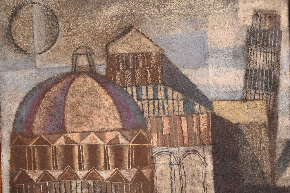 Lot 290: Franco Gentilini (1909 – 1981), Pisa-Dark Rome 1955, oil and sand on canvas, signed and dated lower right Gentilini 56′, 31 3/4″ x 2…