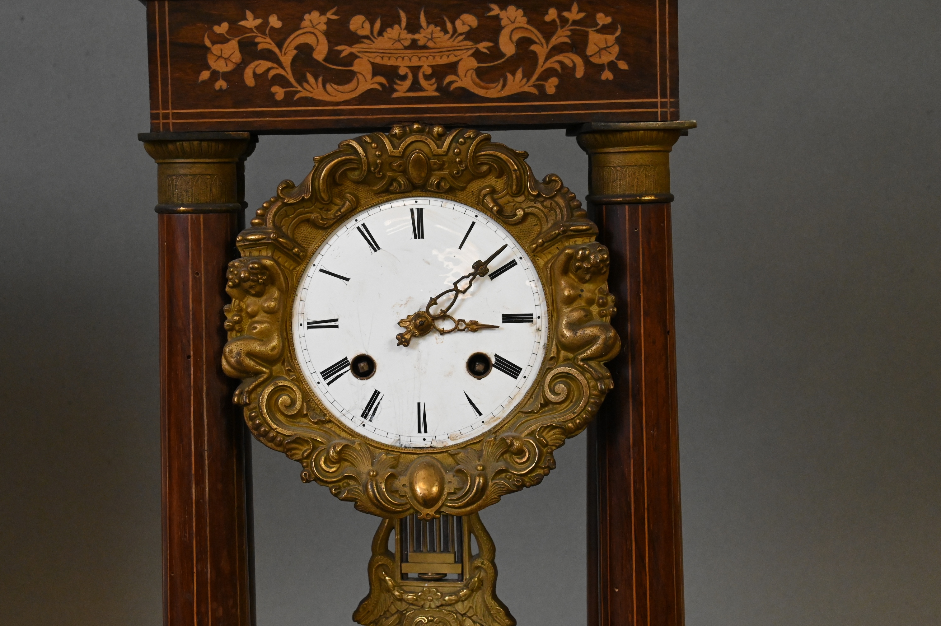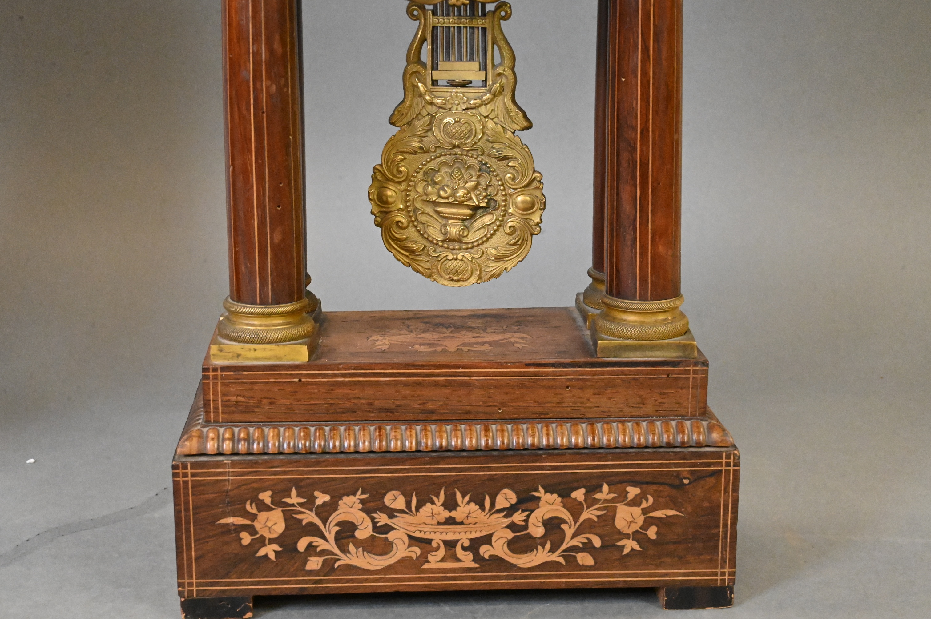 Lot 290: French Empire Inlaid and Gilt Mounted Portico Clock