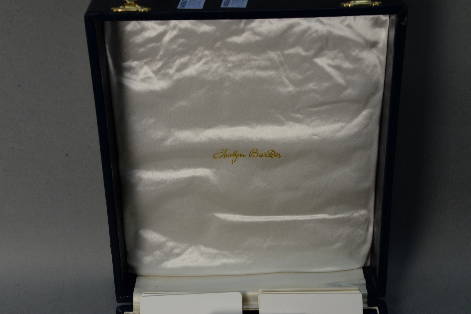 Jocelyn Burton Set of Fourteen Sterling Silver Bull Head Place Card Holders in original Jocelyn Burton fitted box, fitted for 13, with original cards box, monogrammed PDR 26.2 troy ounces. Provenance: The consignor’s late husband, Philip Refson, owned the Charles de Temple jewelry shop on Jermyn St, London in the late 1970’s through early 90’s. Charles de Temple and Jocelyn Burton were friends, and he carried many of Jocelyn’s silver pieces in his store. Mr. Refson became a private client and personal friend of Jocelyn’s during this time and often commissioned pieces directly from Jocelyn. The chargers and the bull place card holders Philip was a Taurus are examples of commissioned pieces.