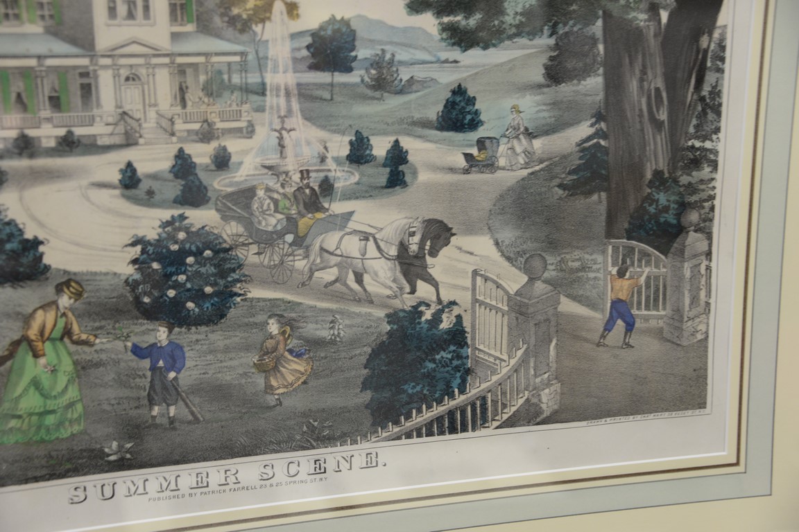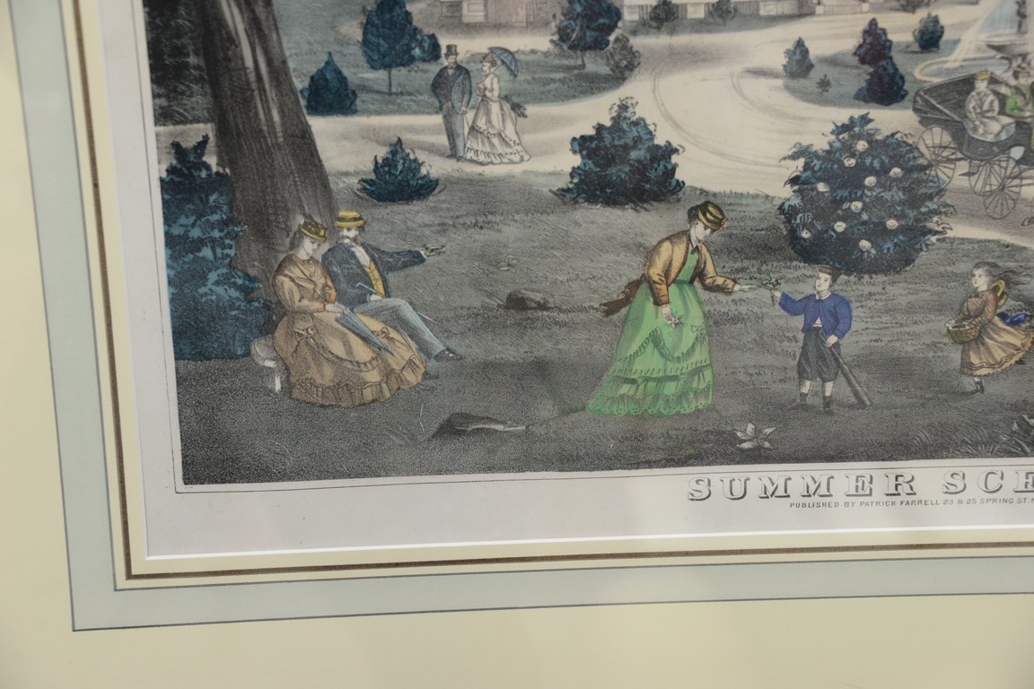 Patrick Farrell, colored lithograph, Summer Scene, drawn and printed by Charles Hart. sight size 20 x 26 Property from Credit Suisse’s Americana Collection