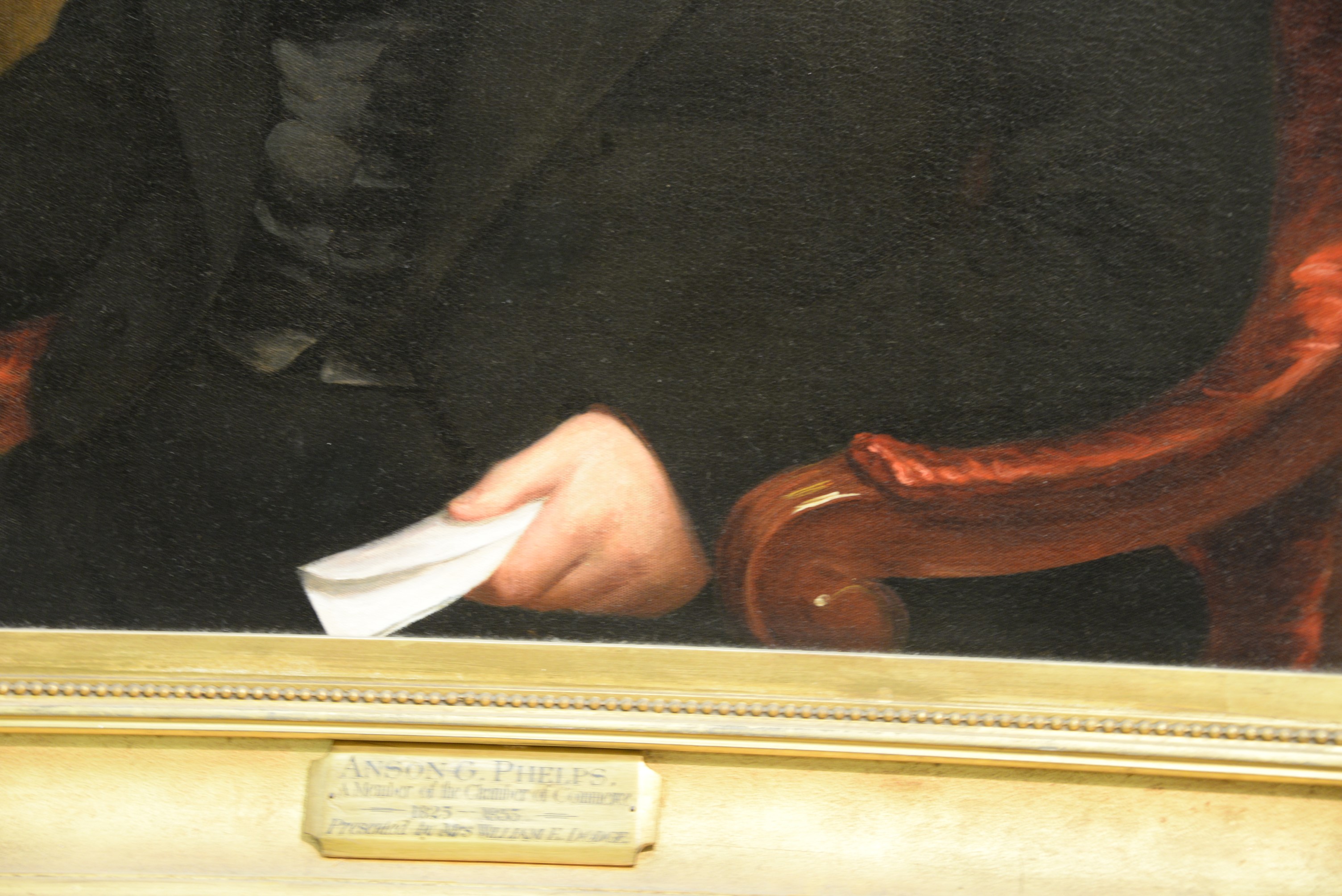 Samuel Lovett Waldo 1783-1861 and William Jewett 1789/90-1874 Portrait of Anson Greene Phelps 1781-1853 oil on canvas, painted from life in 1835 unsigned Plaque: Anson G. Phelps, A Member of the Chamber of Commerce 1825-1833, Presented by Mrs. William E. Dodge. 36 x 29 American frame, circa 1860’s, frame wd. 5 1/2 in. Phelps was a businessman from Connecticut. He founded Phelps Dodge Mining Corporation. Provenance: The Chamber of Commerce of the State of New York Donaldson, Lufkin & Jenrette, New York Property from Credit Suisse’s Americana Collection Literature: Chamber of Commerce of the State of New York, Catalogue of Portraits in the Chamber of Commerce of the State of New York New York, 1924 p. 35, no. 92.
