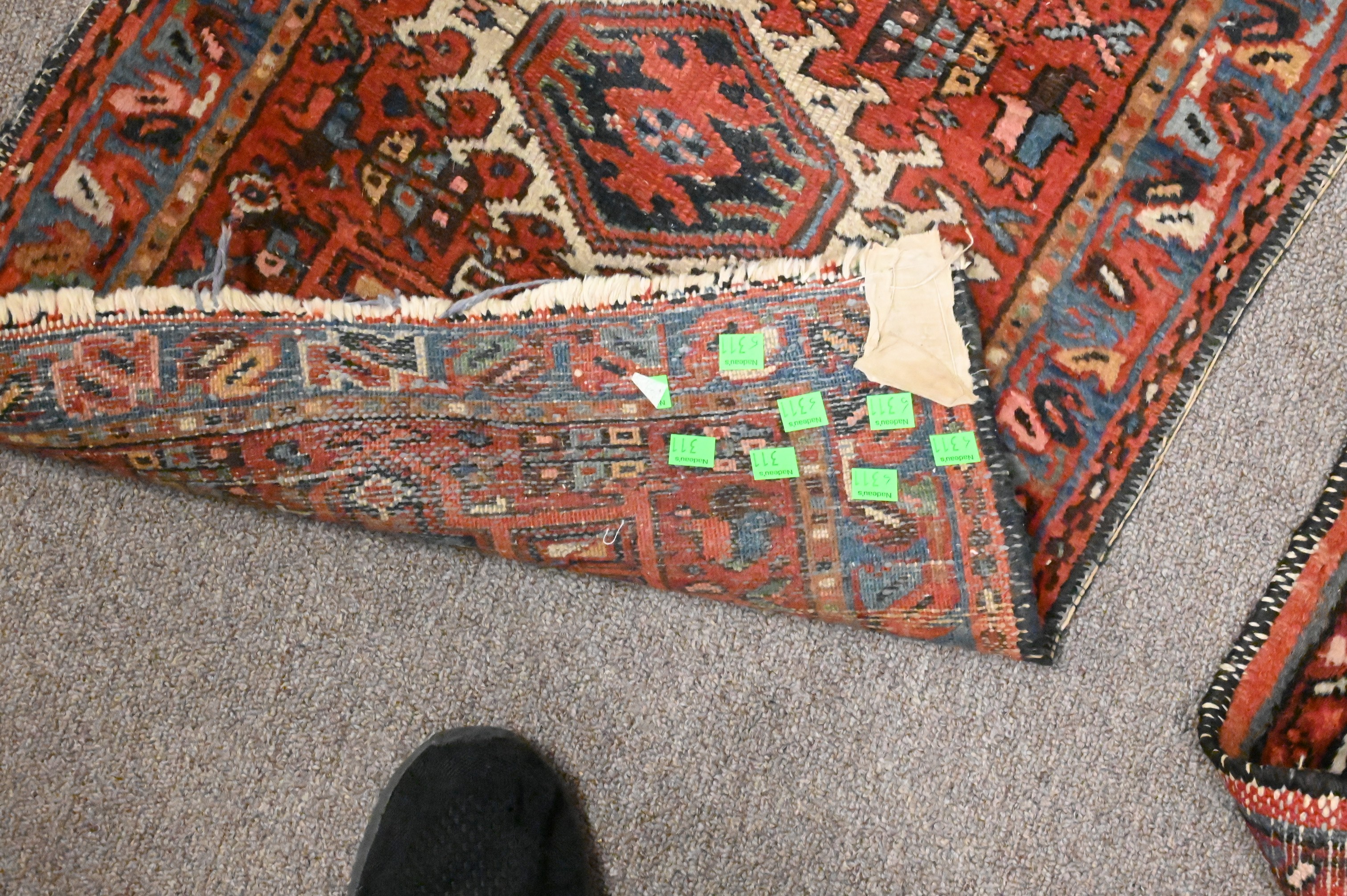 10′ x 13′ along with four oriental matts 2′ x 2′ 7″, 1′ 9″ x 2′ 5″, 1′ 9″ x 2′ 9″, and 2’7″